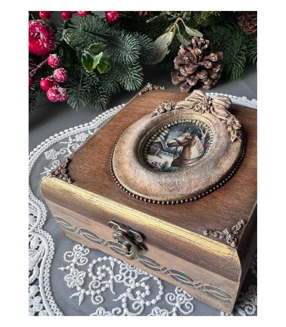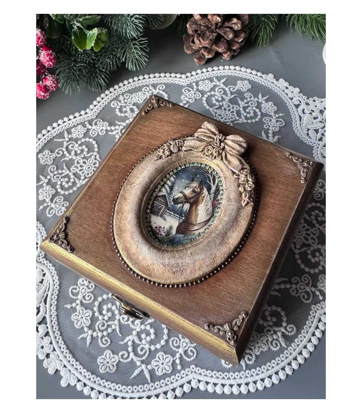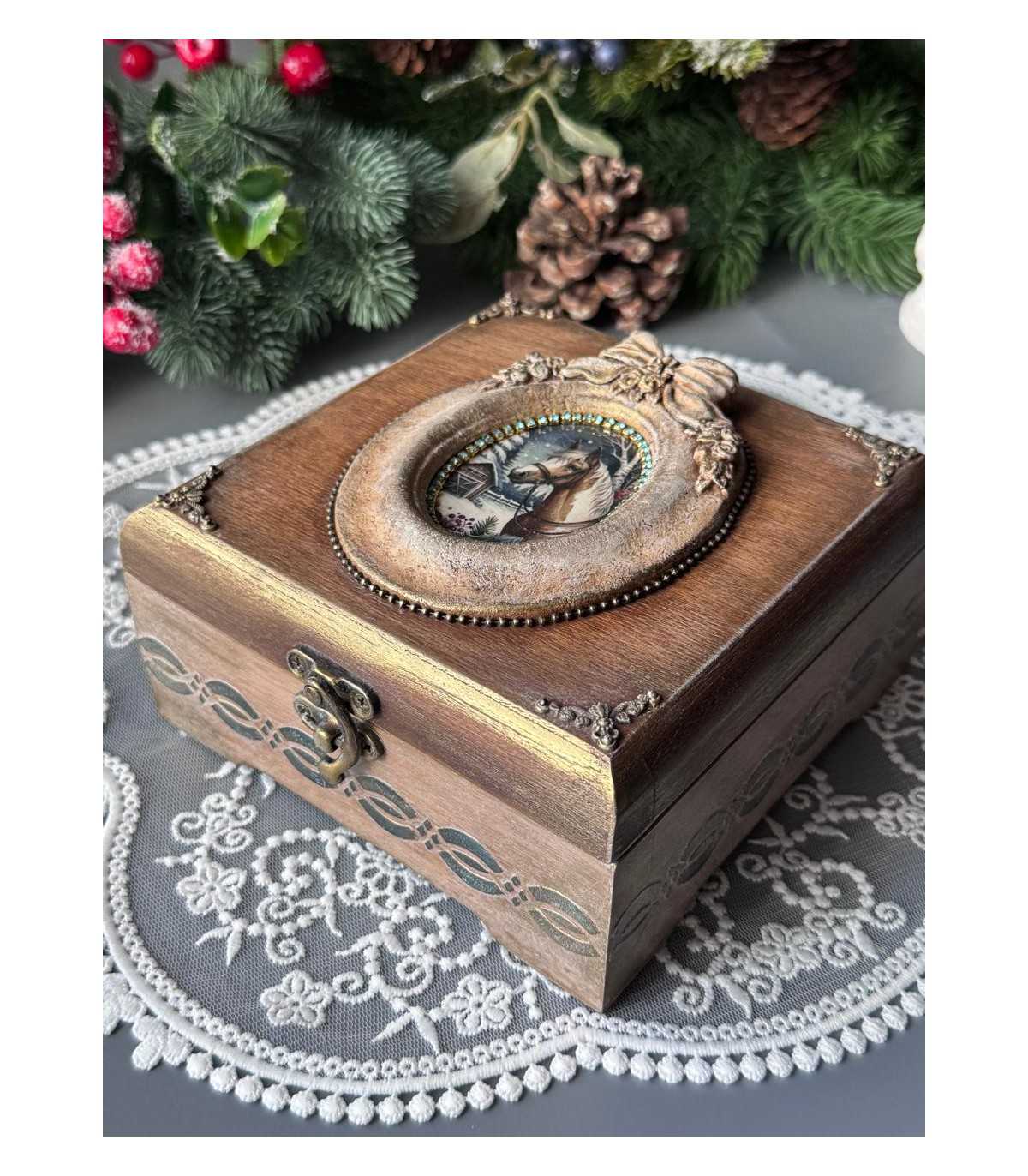Винтажная шкатулка выполненная в технике декупаж. Украшена лепниной, рельефом, шариковой и стразовой цепочкой. Прекрасный подарок и стильная деталь в интерьере