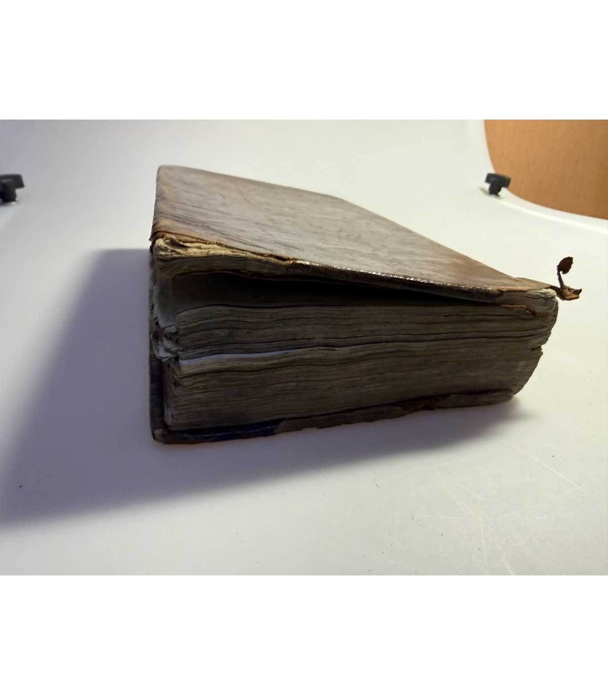 Переплет: картон, цельно-кожаный, потертости и трещинки, утраты мелких кусочков кожи, расслоение картона по краям и углам переплета . Состояние: удовлетворительное