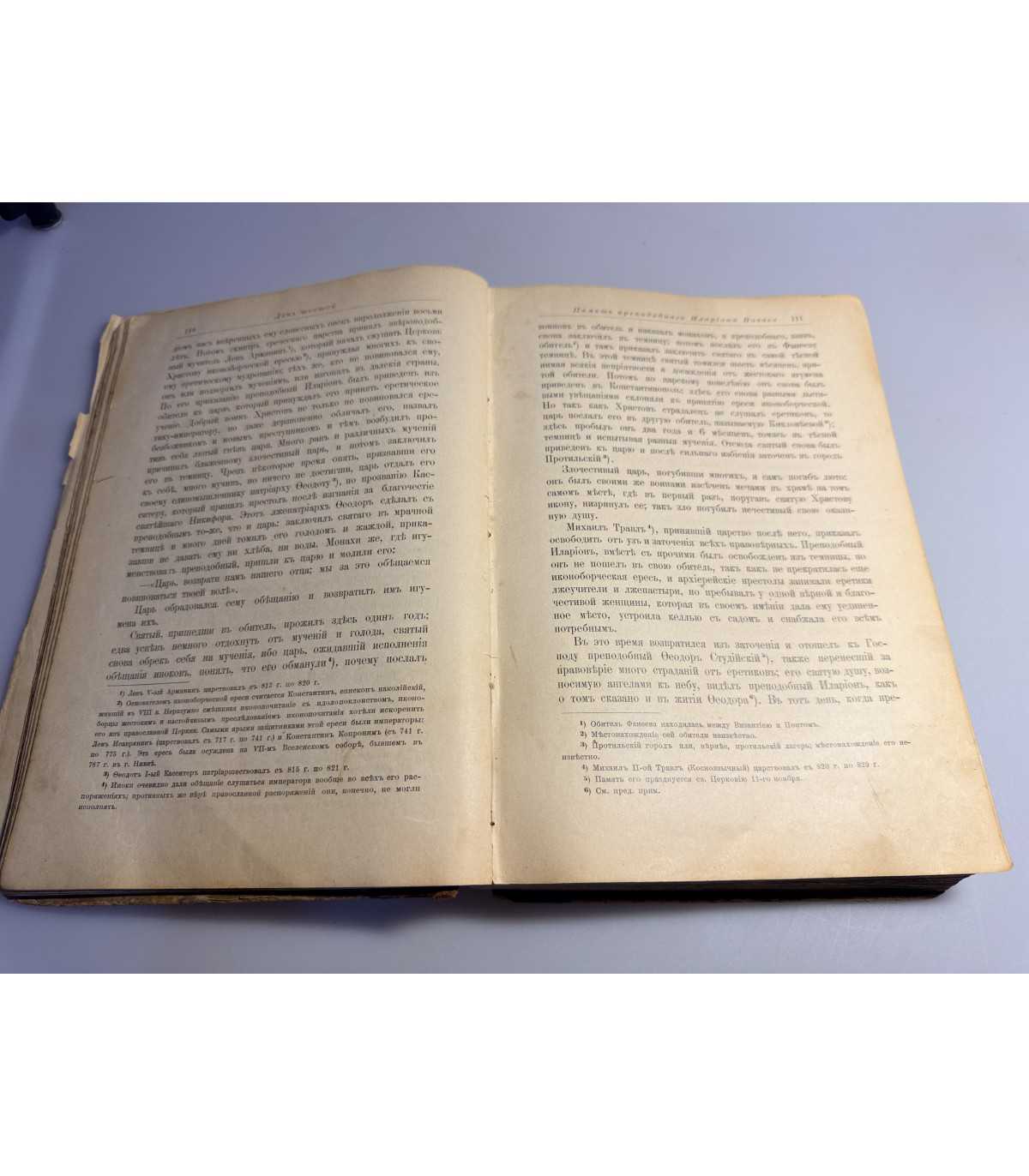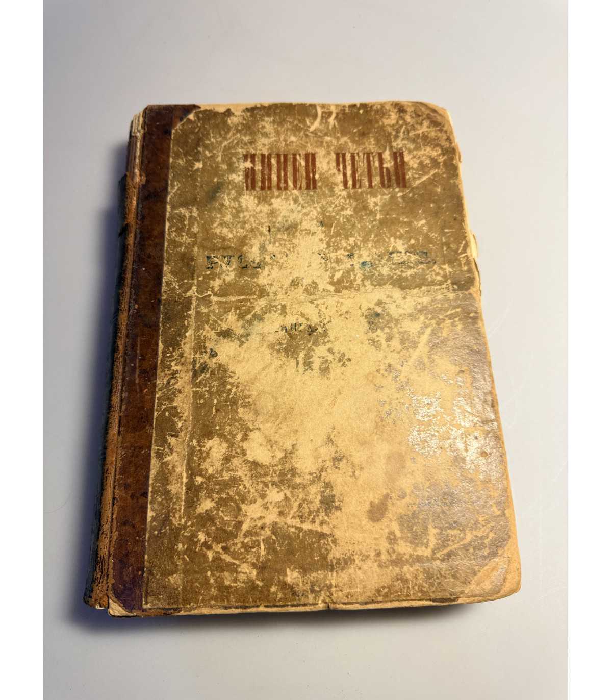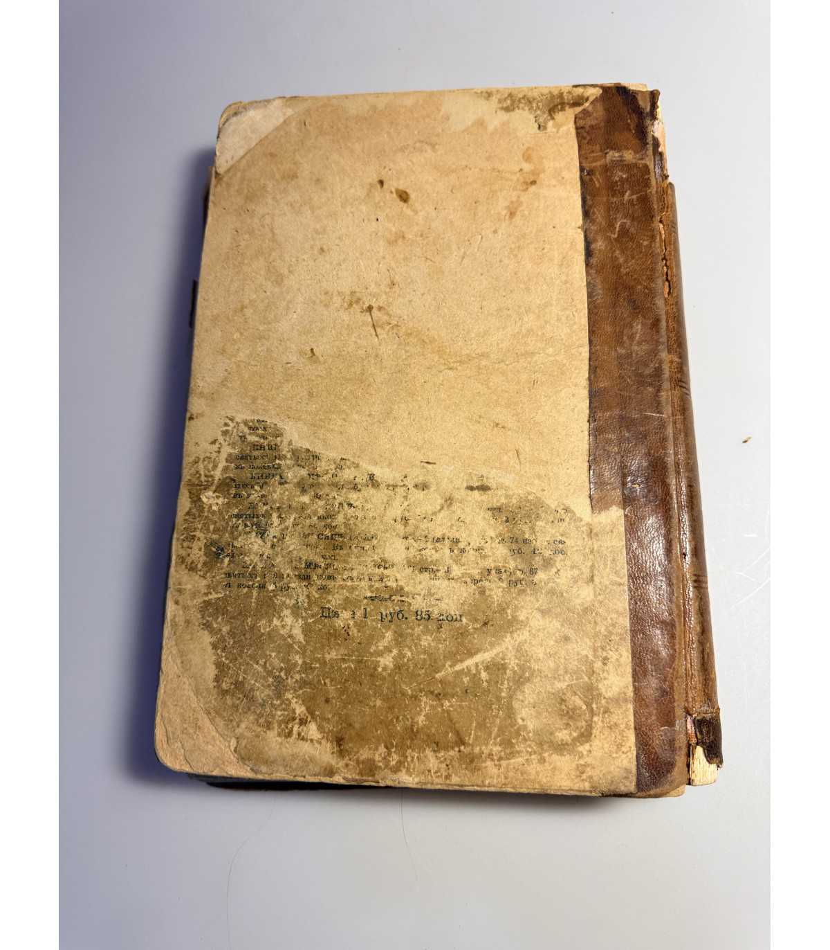 Книжный блок: - плотный, не деформирован, не распадается, есть трещинки у форзацев, но не значительные. Выпадающий лист - титульный, «лисьи» пятна в не большом количестве. Титульный лист - сохранен, есть пометки.