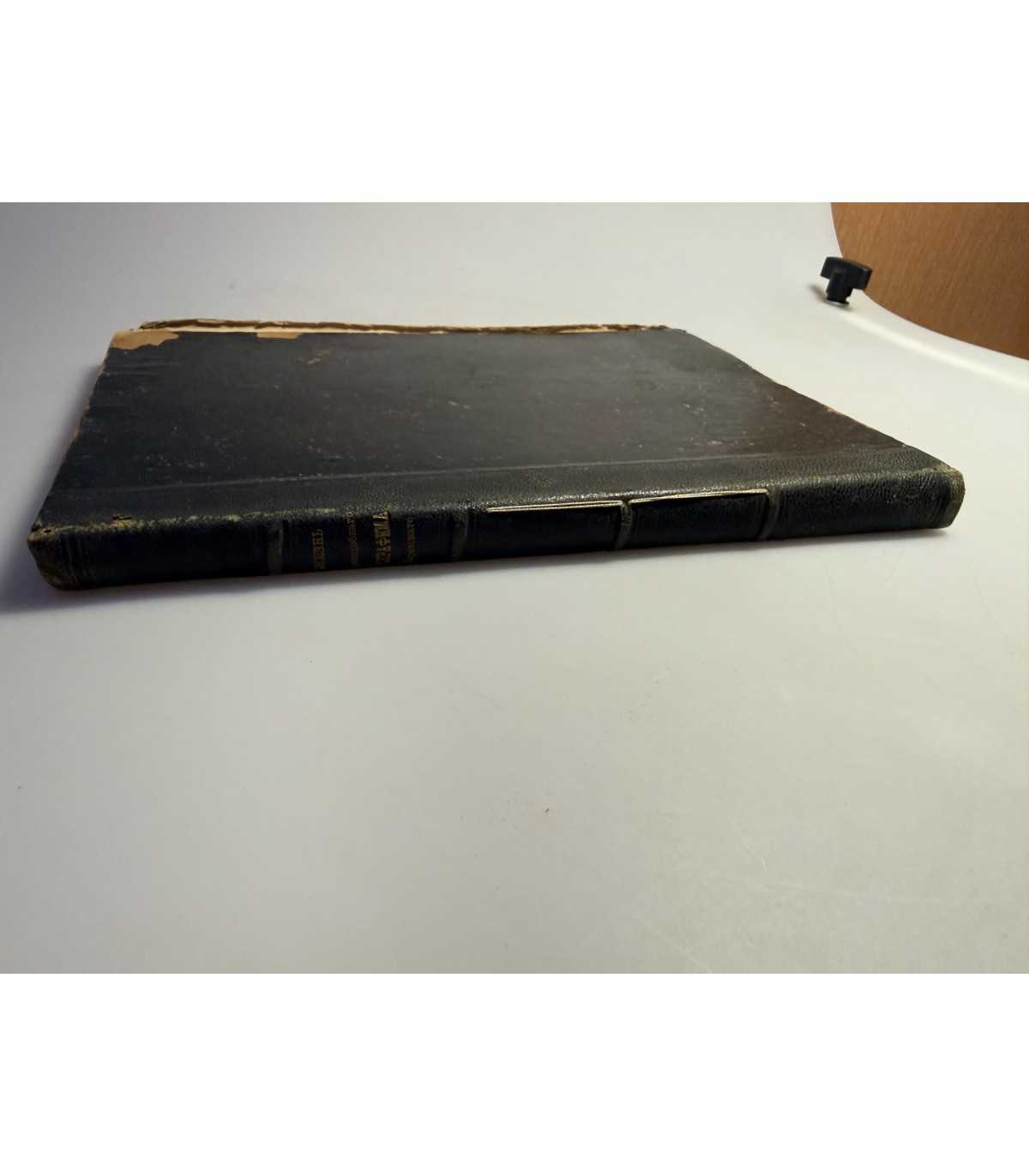 Переплет: картонно-кожаный, смешанный, на корешке тиснение золотом, потертости и мелкие разрывы. По уголкам расслоение картона. Состояние: