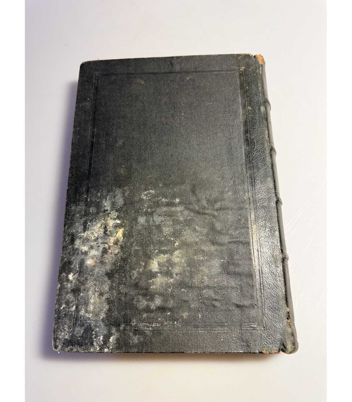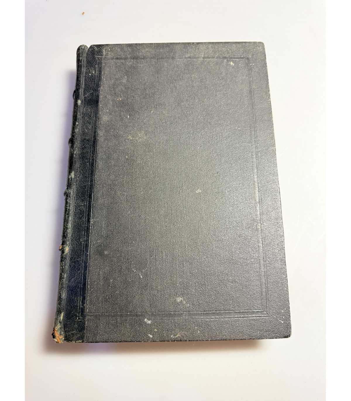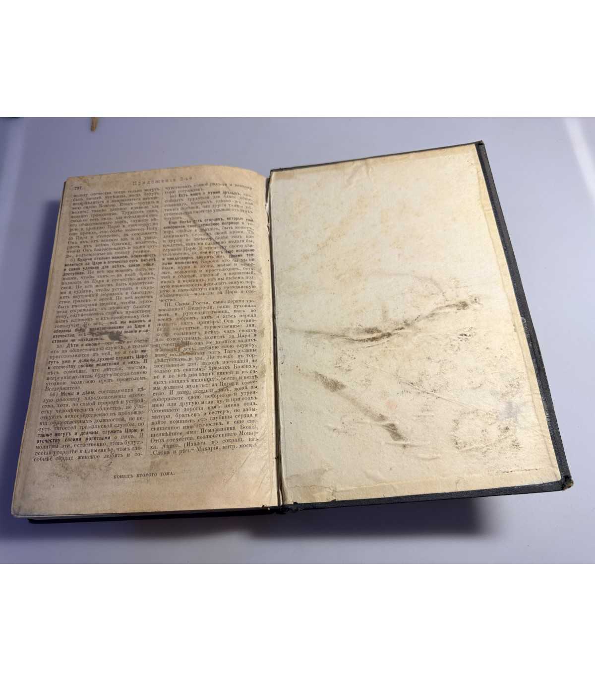 Книжный блок: - плотный, не деформирован, не распадается, выпадающих листов - нет, «лисьи» пятна, загрязнения или пятна от влаги на страницах присутствуют. гитульный лист - утрачен. Есть.