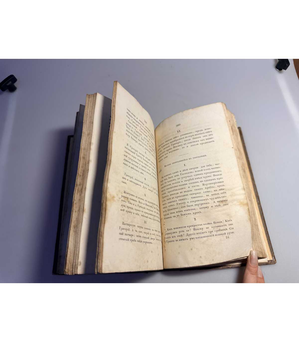 Книжный блок: - плотный, не деформирован, не распадается, выпадающих листов - нет, «лисьи» пятна, загрязнения или пятна от влаги на страницах присутствуют. Титульный лист - сохранен. Есть пометки, печати.