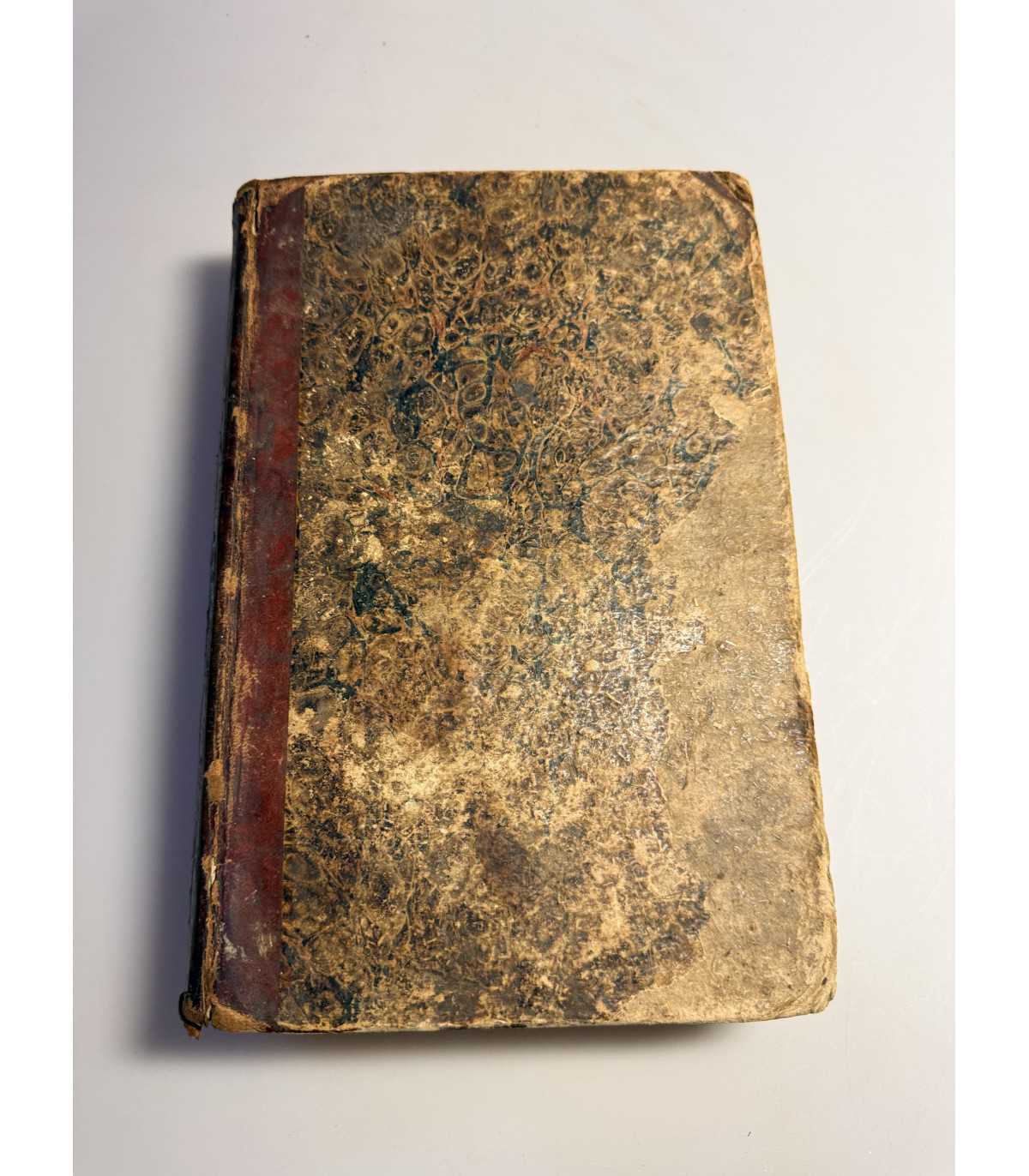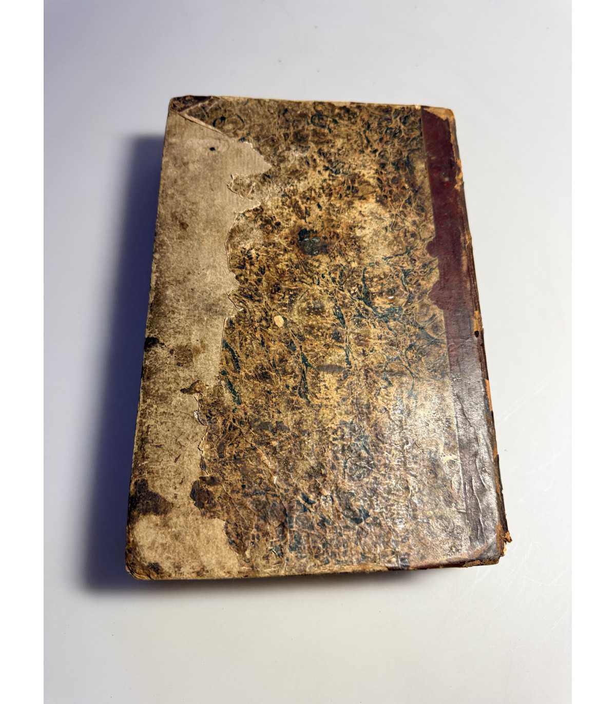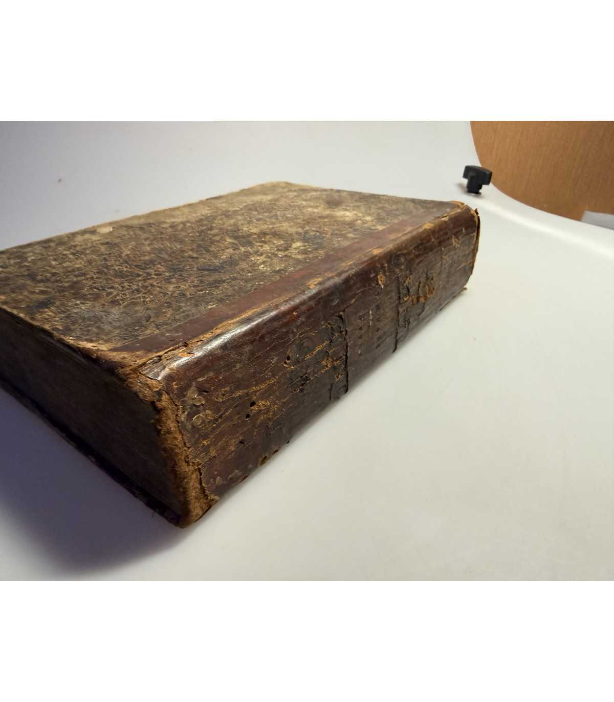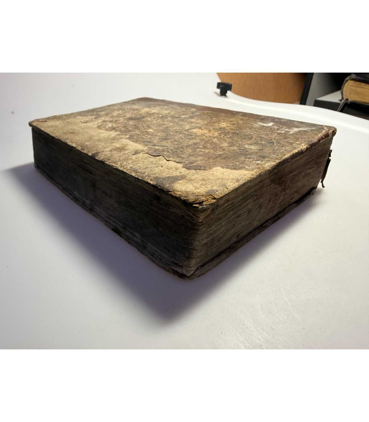 Переплет: смешанный картонно-кожаный, потертости и мелкие разрывы, утраты кусочков кожи на корешке. По краям крышек потертости картона.