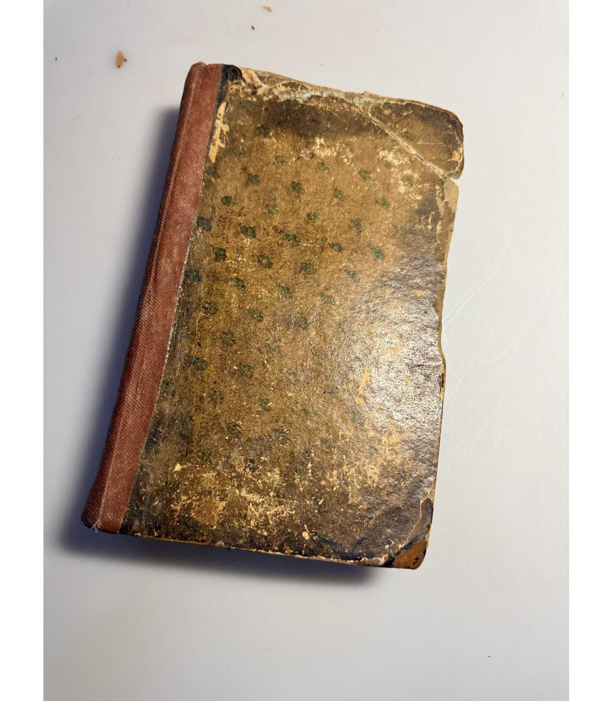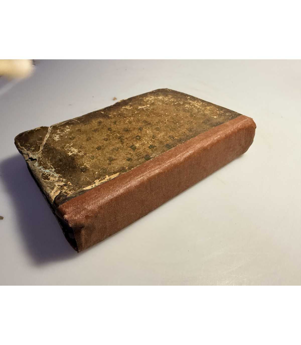 Переплет: смешанный картонно-кожаный; корешок заклеен дермантином; на крышках разломы и расслоение картона по уголкам. Переплет в слабо удовлетворительном состоянии.