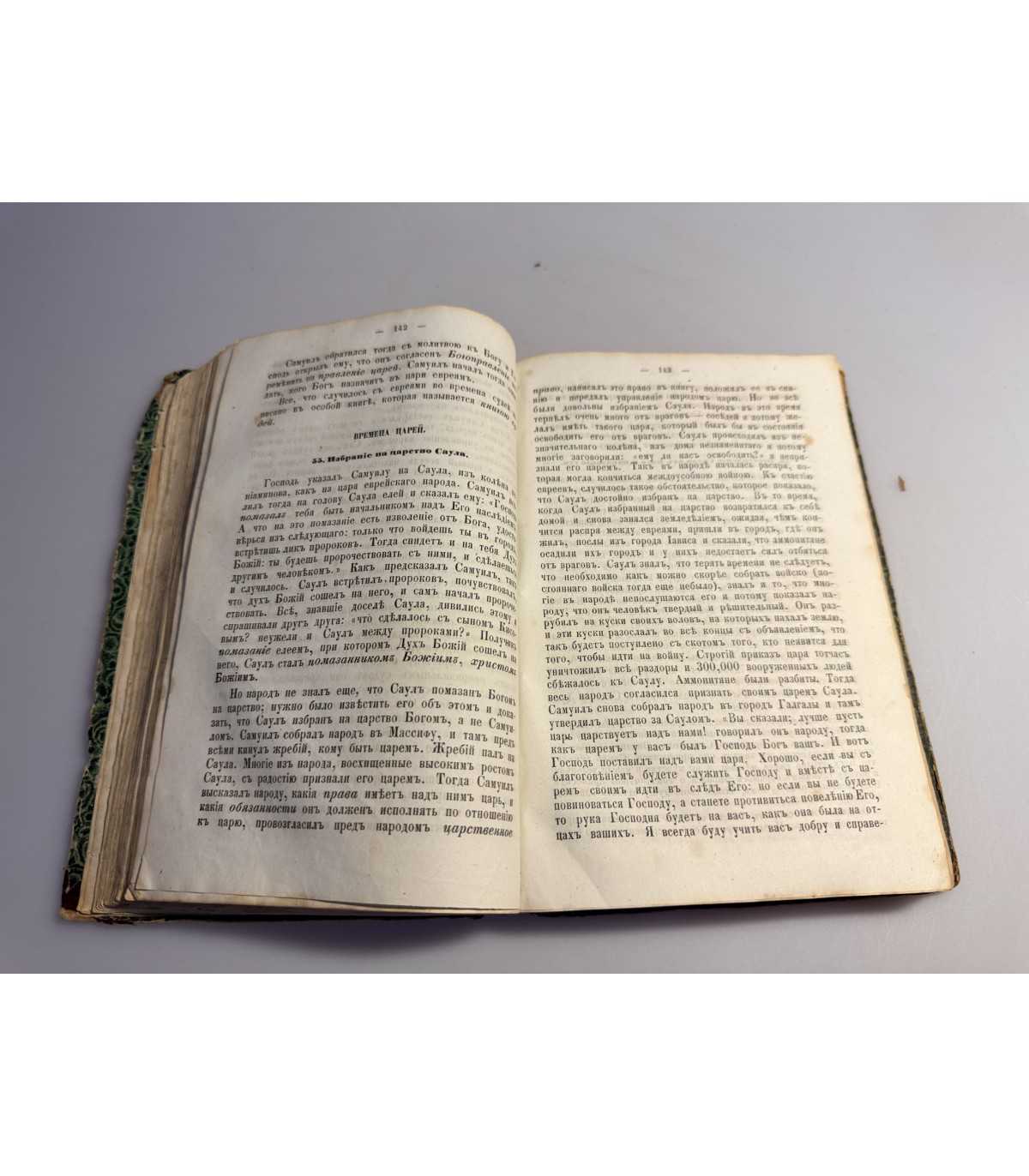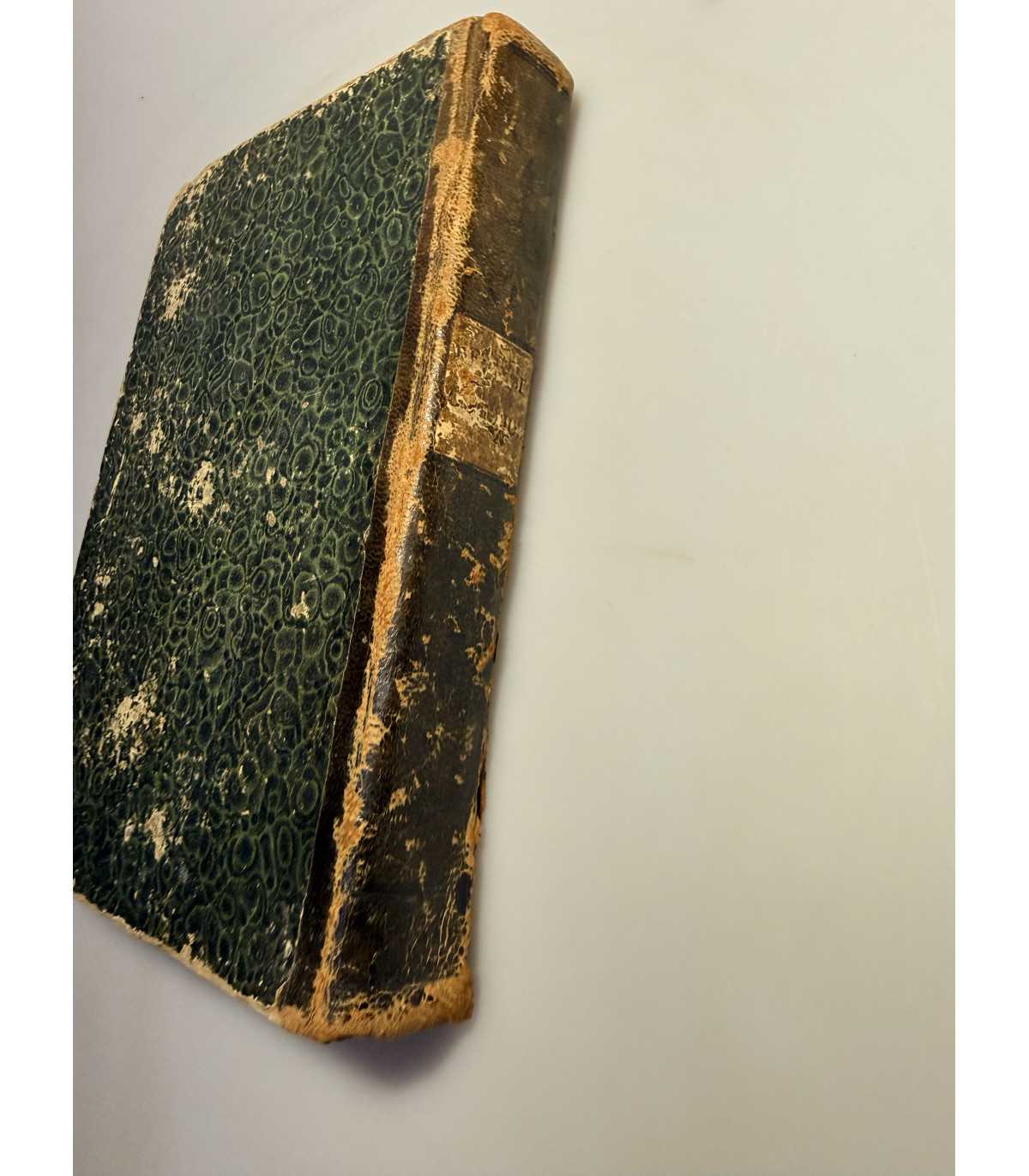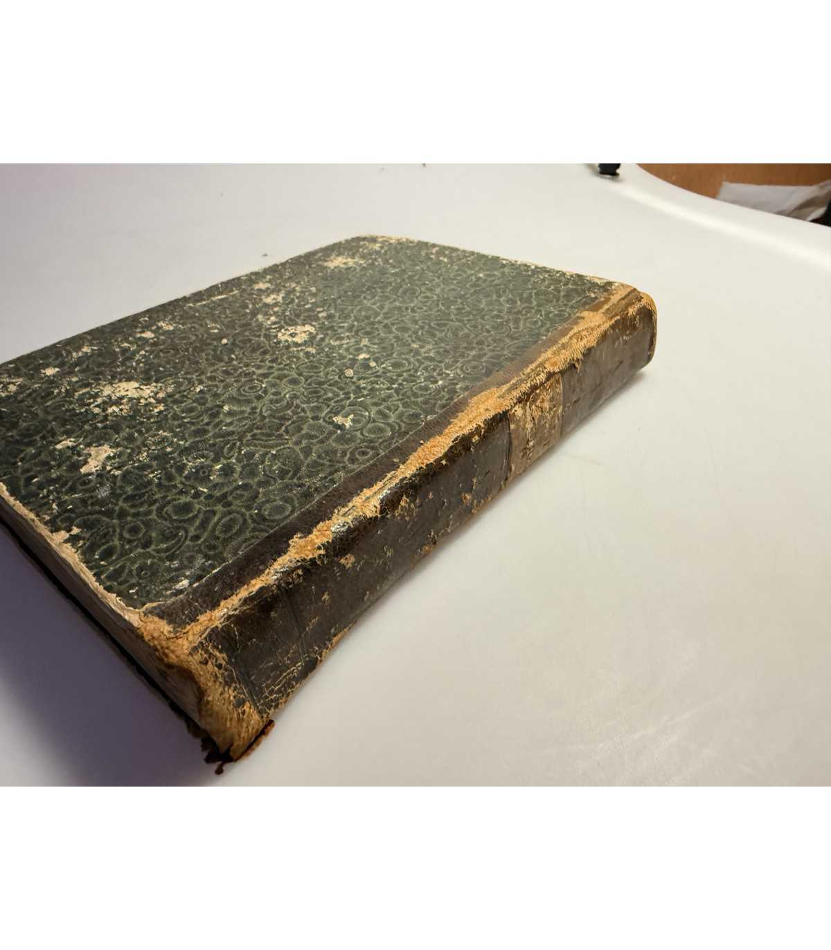 Книжный блок: - плотный, не деформирован, не распадается, есть трещинки у форзацев, но не значительные. Выпадающих листов - нет, «лисьи» пятна в большом количестве. Титульный лист - сохранен.