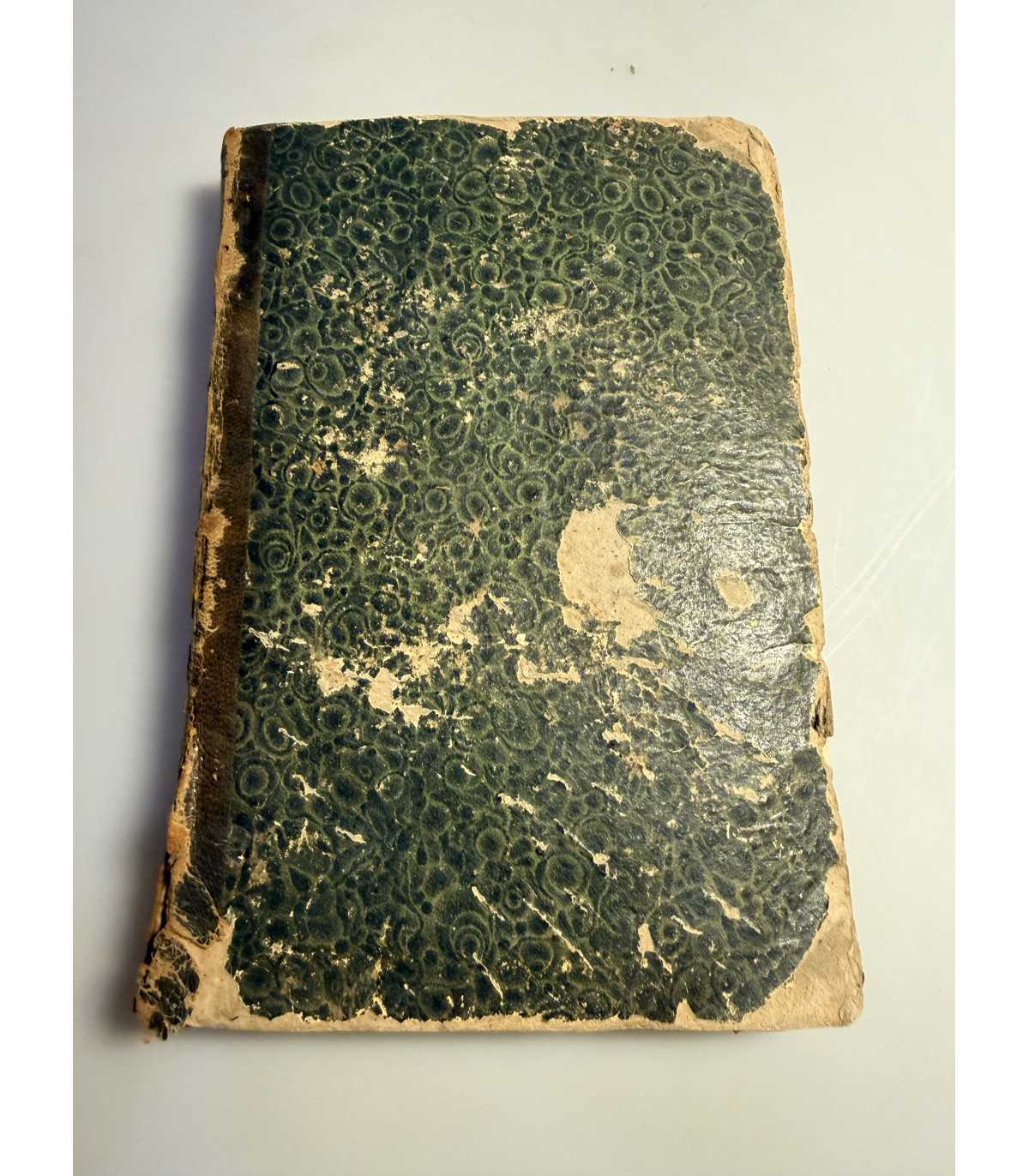 Переплет: смешанный картонно-кожаный; тиснение на корешке, корешок потертый, разрывы; на крышках расслоение картона по уголкам и краям, утраты цветной бумаги. Переплет в удовлетворительном состоянии.