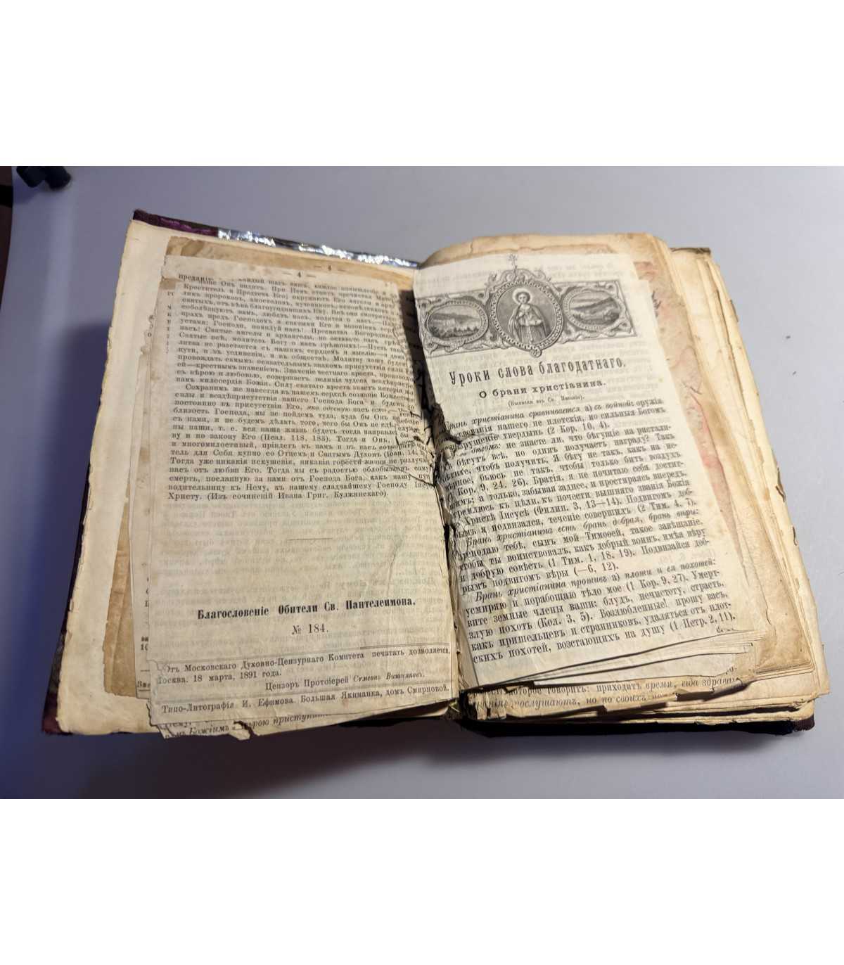 Книжный блок: - не плотный, деформирован, распадается, выпадающих листов - нет, «лисьи» пятна, загрязнения или пятна от влаги на страницах присутствуют. Края листов немного потрепаны. Многочисленные трещины, много надорванных листов