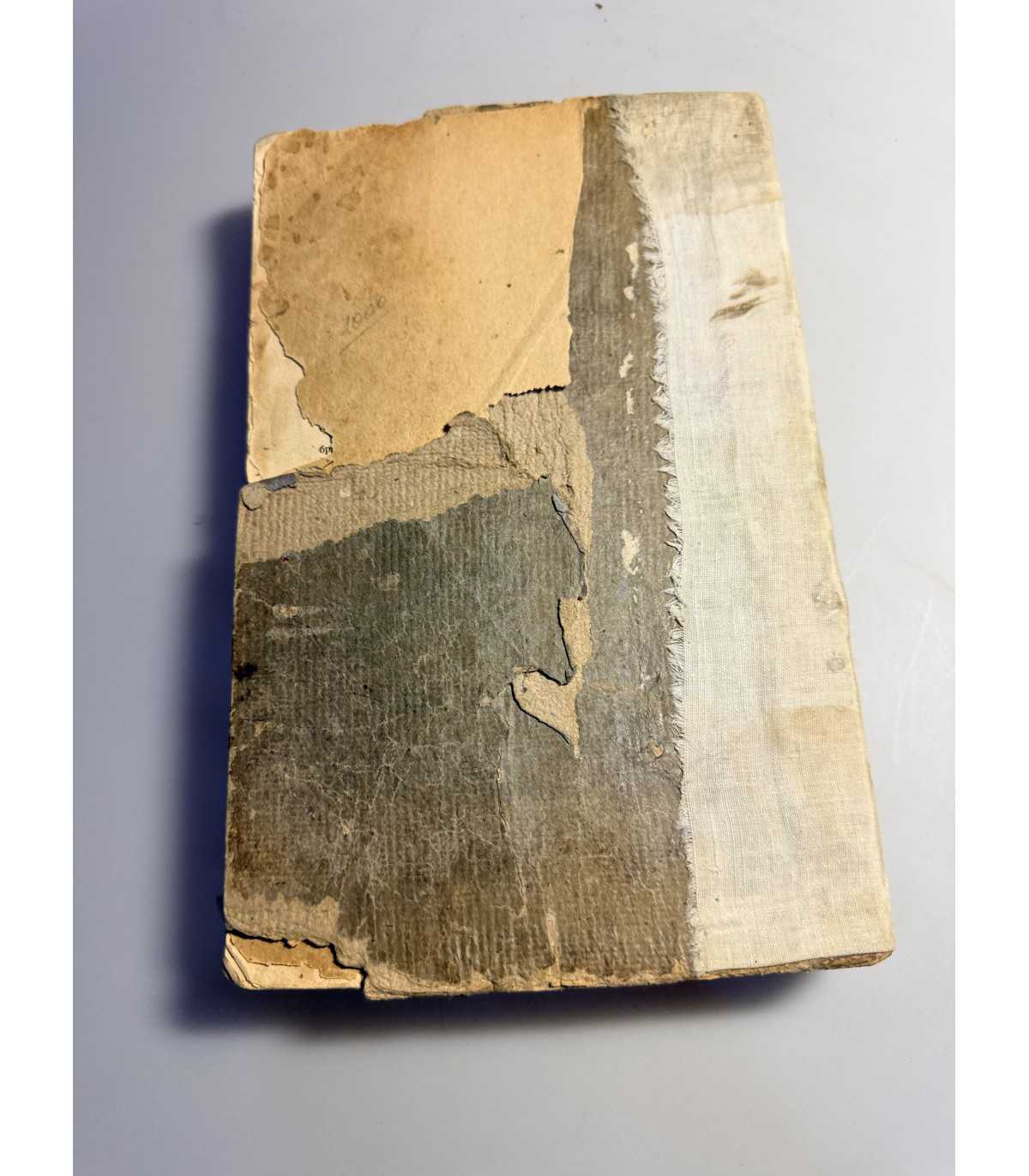 Переплет: картон, ткань на корешке, цветные части переплета утрачены, картон расслаивается.
