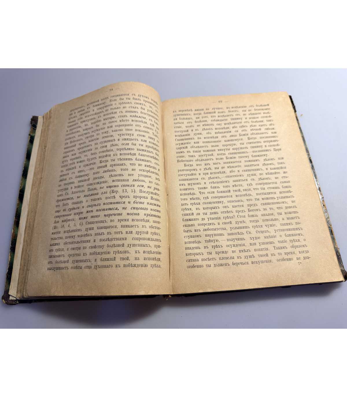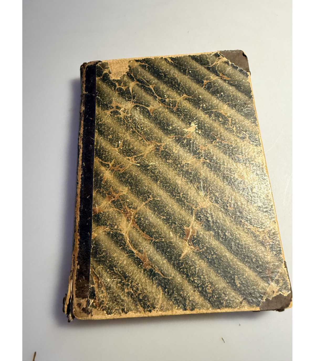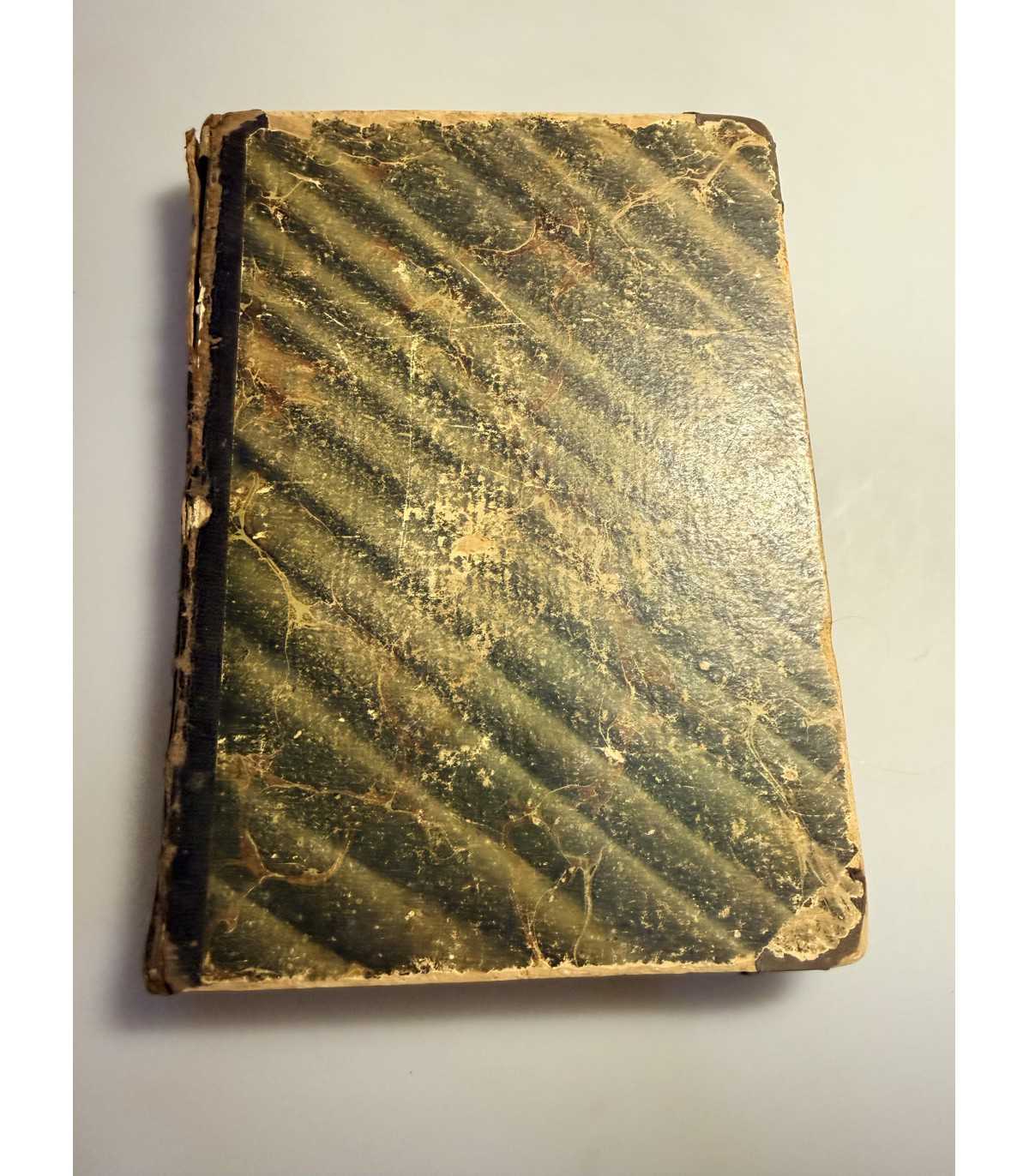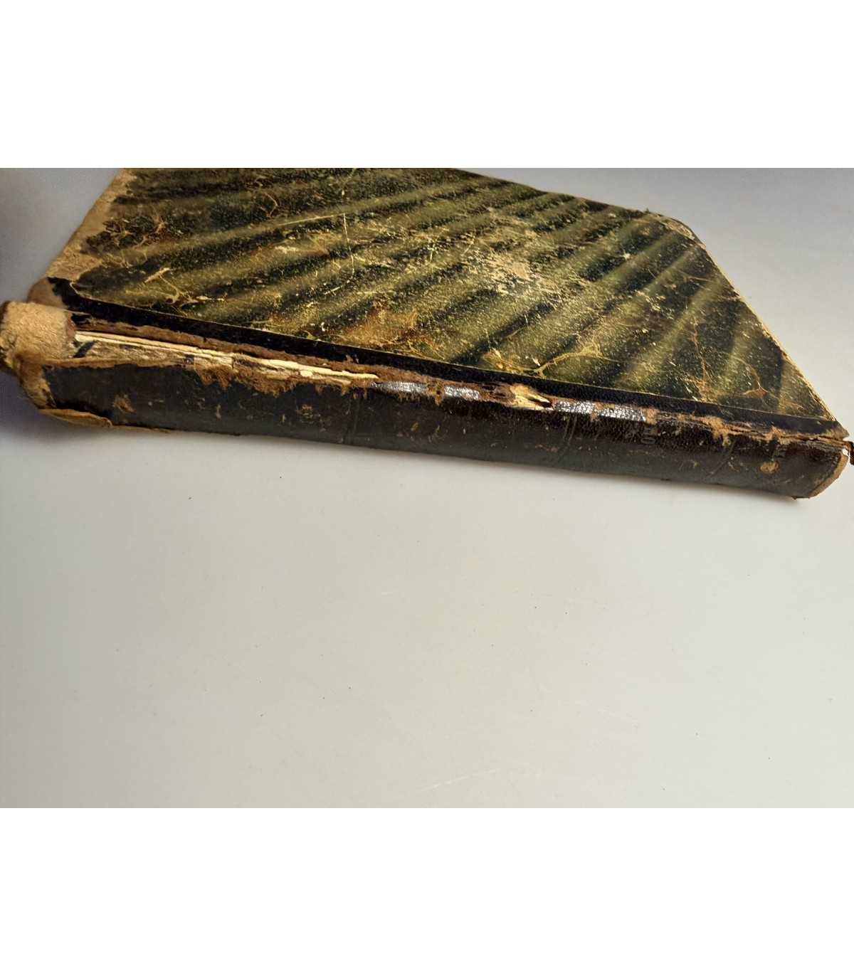 Книжный блок: - плотный, не деформирован, не распадается, есть трещинки у форзацев, но не значительные. Выпадающих листов - нет, «лисьи» пятна в не большом количестве. 1 итульны лист - сохранен, надписи на титулах и пометки в тексте.