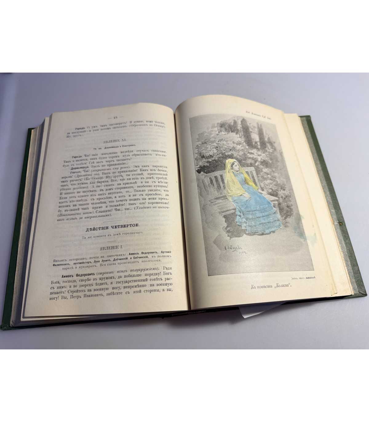 Книжный блок: плотный, не деформирован, не распадается, выпадающих листов - нет, корешок отошел от переплета; «лисьи» пятна, загрязнения или пятна от влаги на страницах присутствуют. Титульный лист - сохранен.