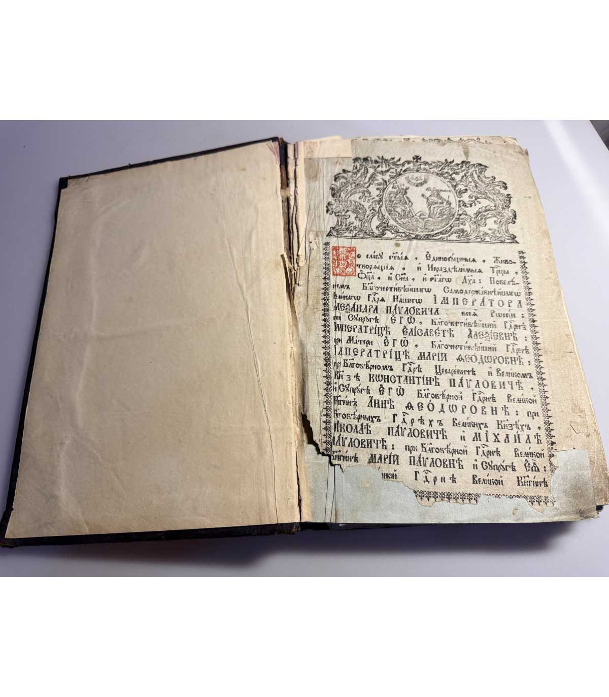 выпадающий лист - 58, «временные» пятна или пятна от влаги на страницах присутствуют. Титульный лист - сохранен. В сшиве трещинки. Есть надорванные листы, есть слабодержащиеся и подклеенные.