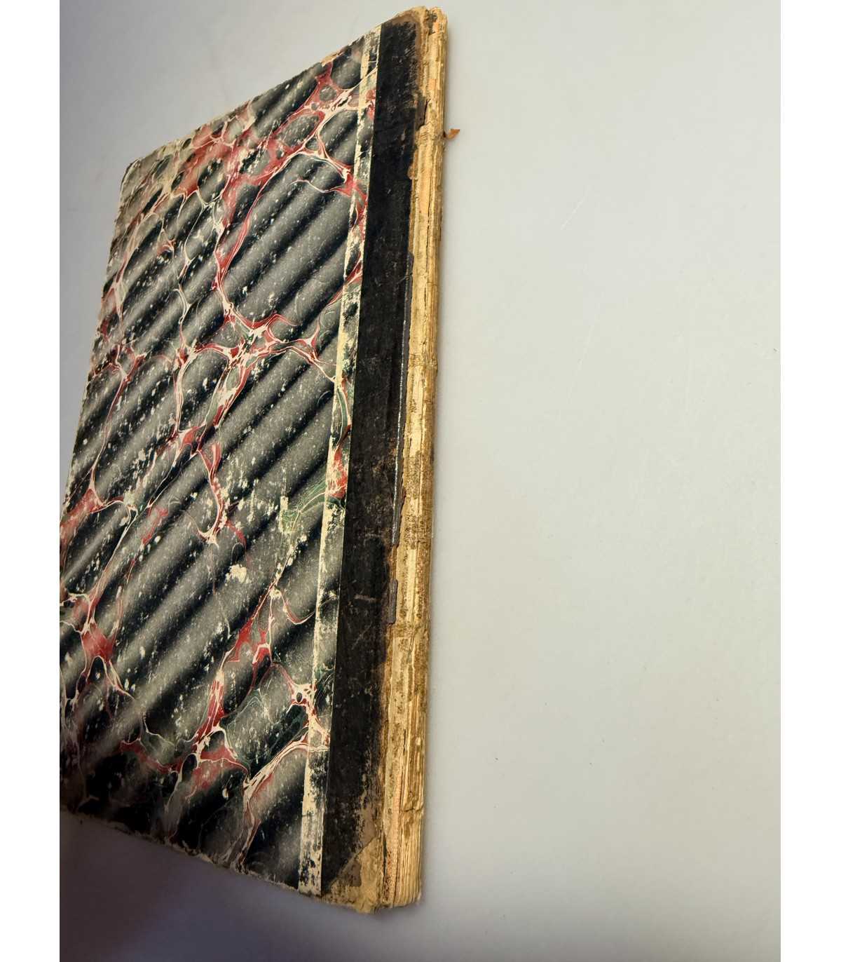 Переплет: полукожаный, потертости, надрывы. Утрата кожи на корешке.По краям и уголкам крышек потертости и расслоение картона.