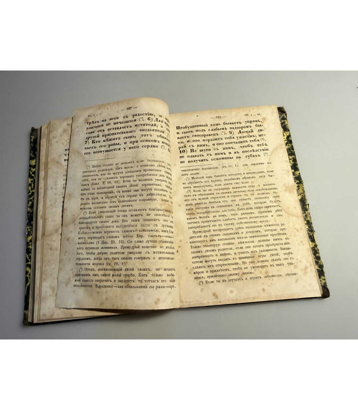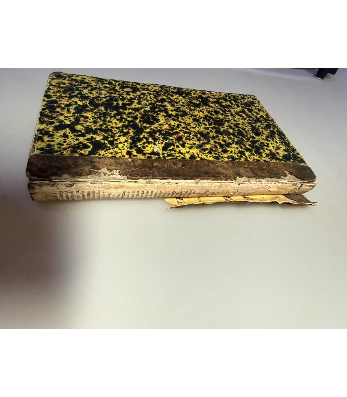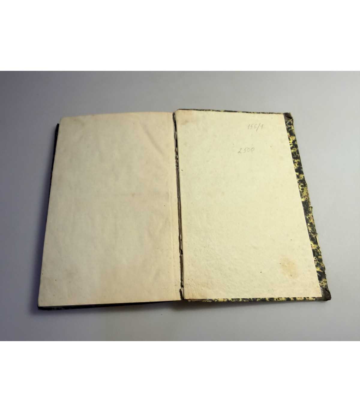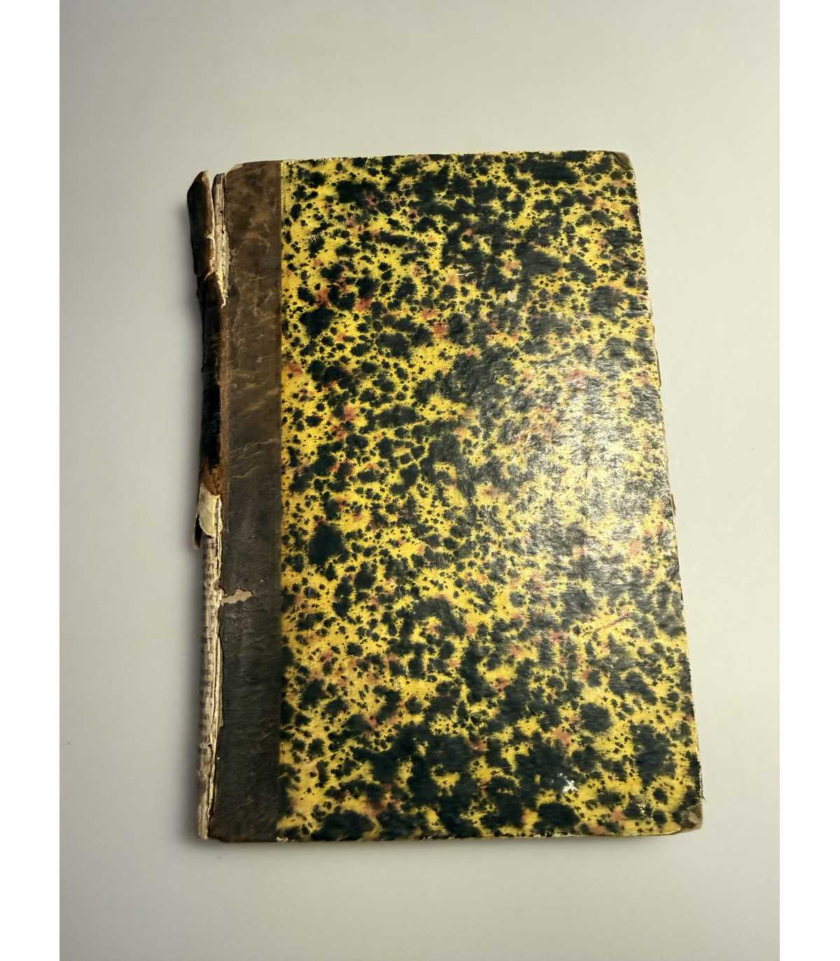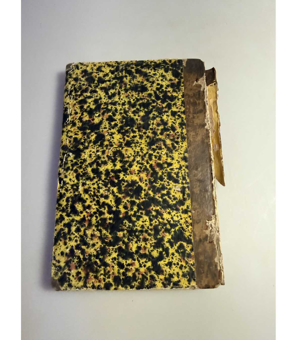 Книжный блок: - плотный, не деформирован, не распадается, есть трещинки у форзацев, но не значительные. Выпадающих листов - нет, «лисьи» пятна в большом количестве. Титульный лист - сохранен, надписи на титулах.