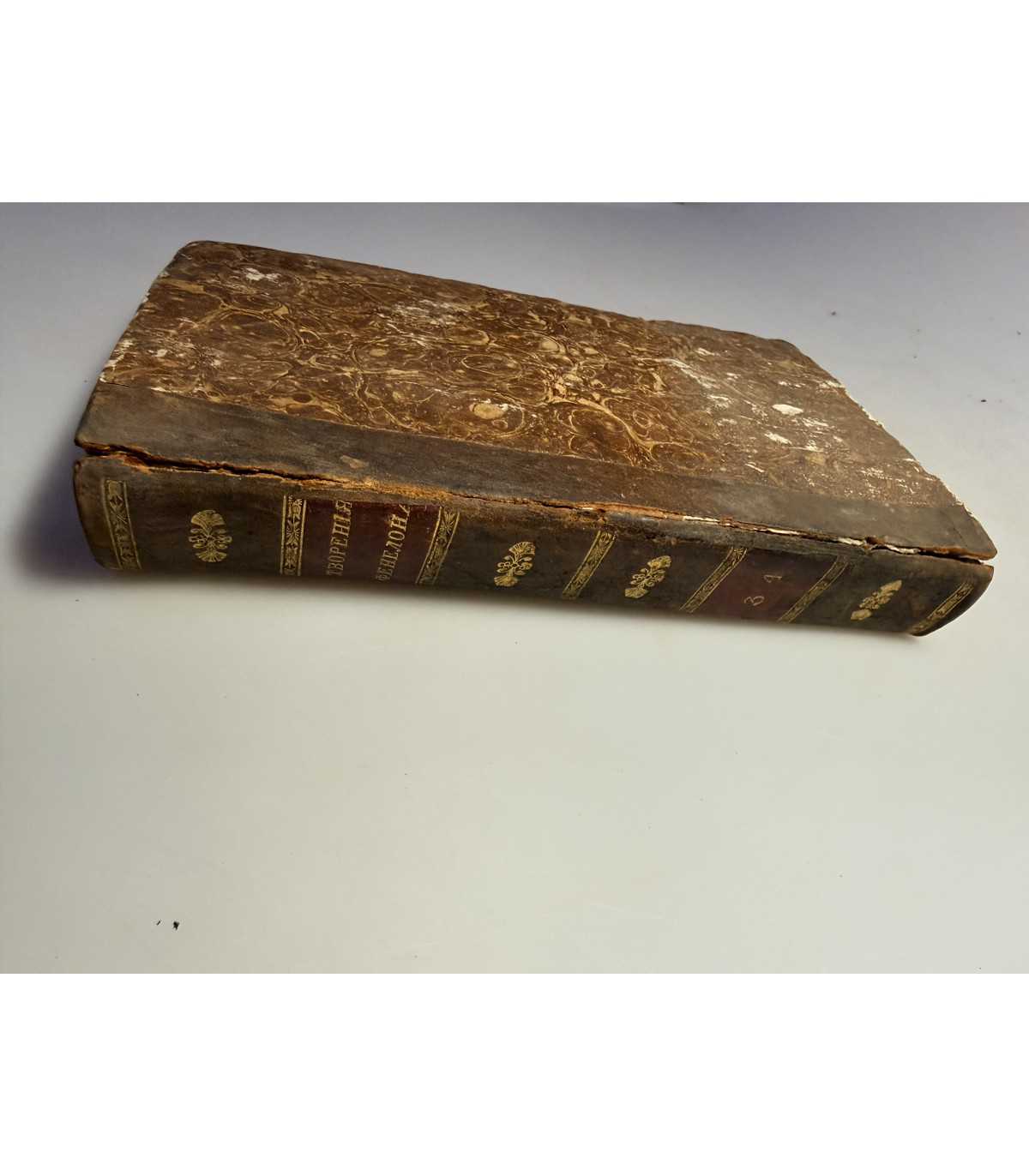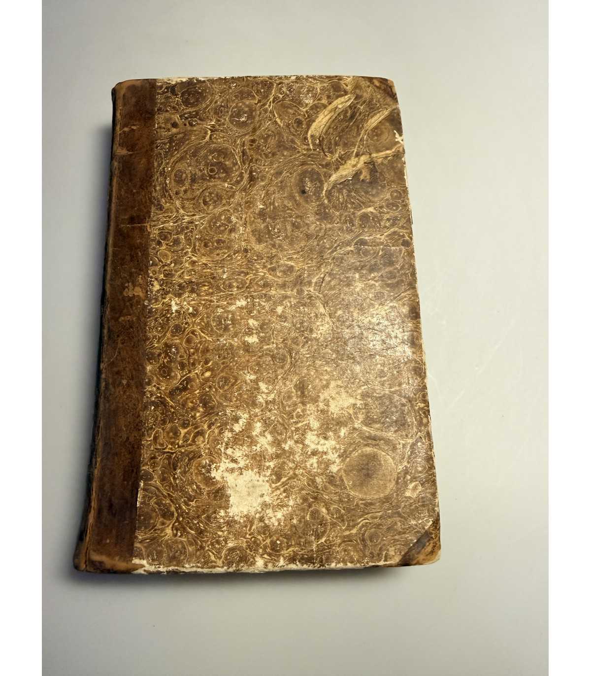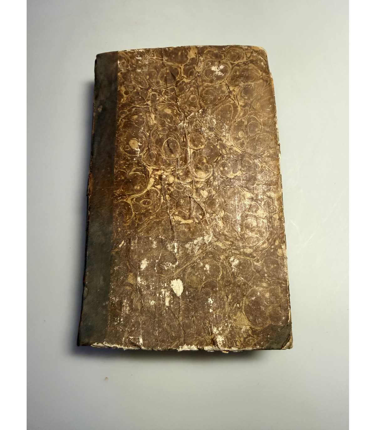 Переплет: смешанный картонно - кожаный, потертости и трещинки на корешке. Красивое тиснение золотом на корешке - три виньетки и название книги, номера томов. По уголкам расслоение картона. Состояние: хорошее