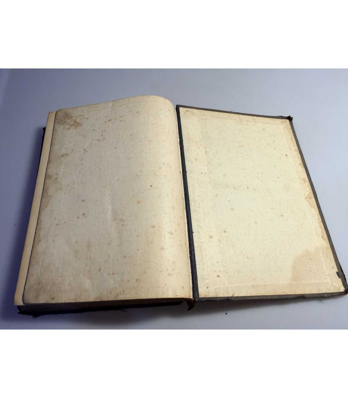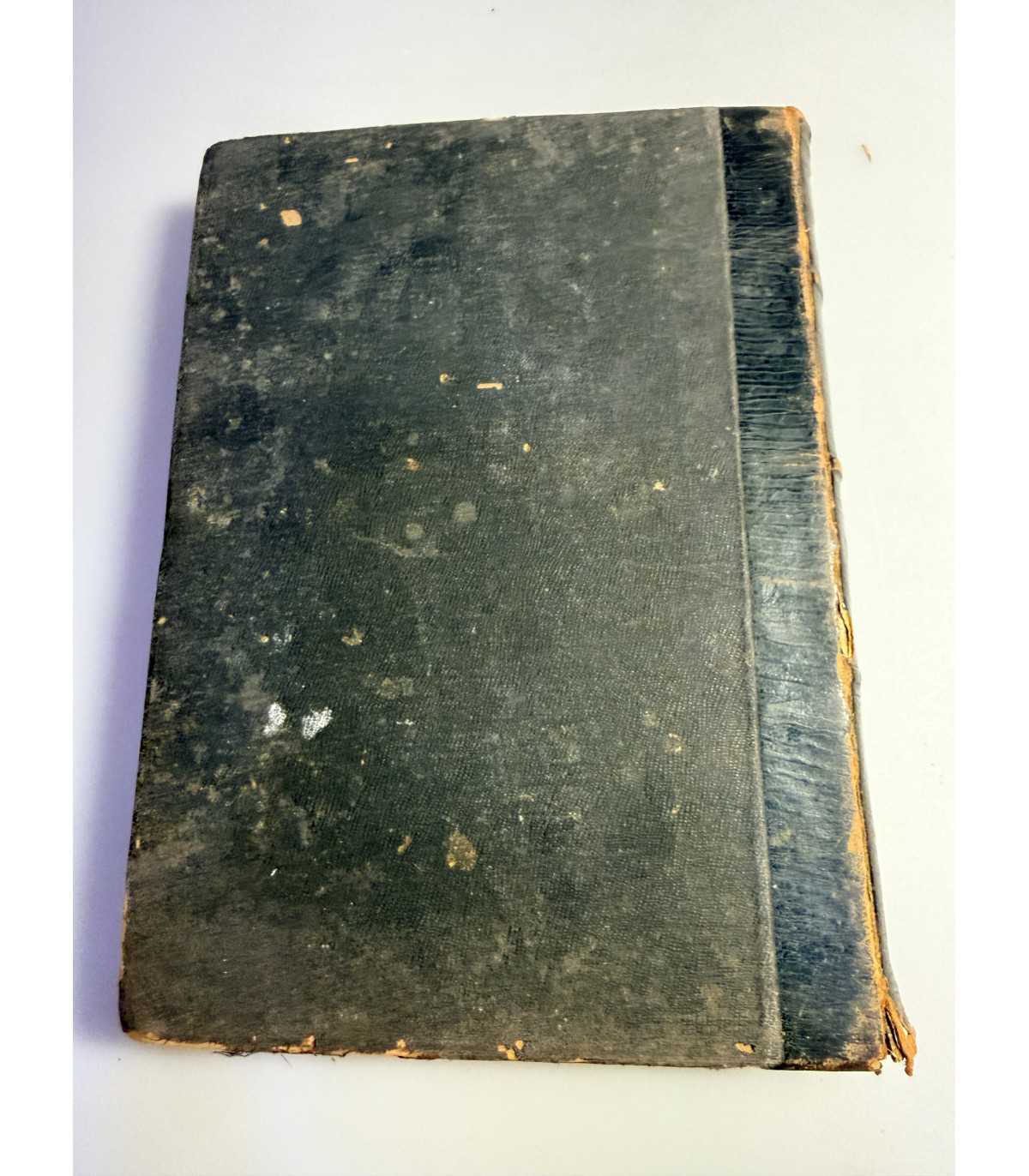 Переплет: смешанный картонно-кожаный, потертости и мелкие разрывы, утраты кусочков кожи и разрывы на корешке, тиснение с названием книги.
