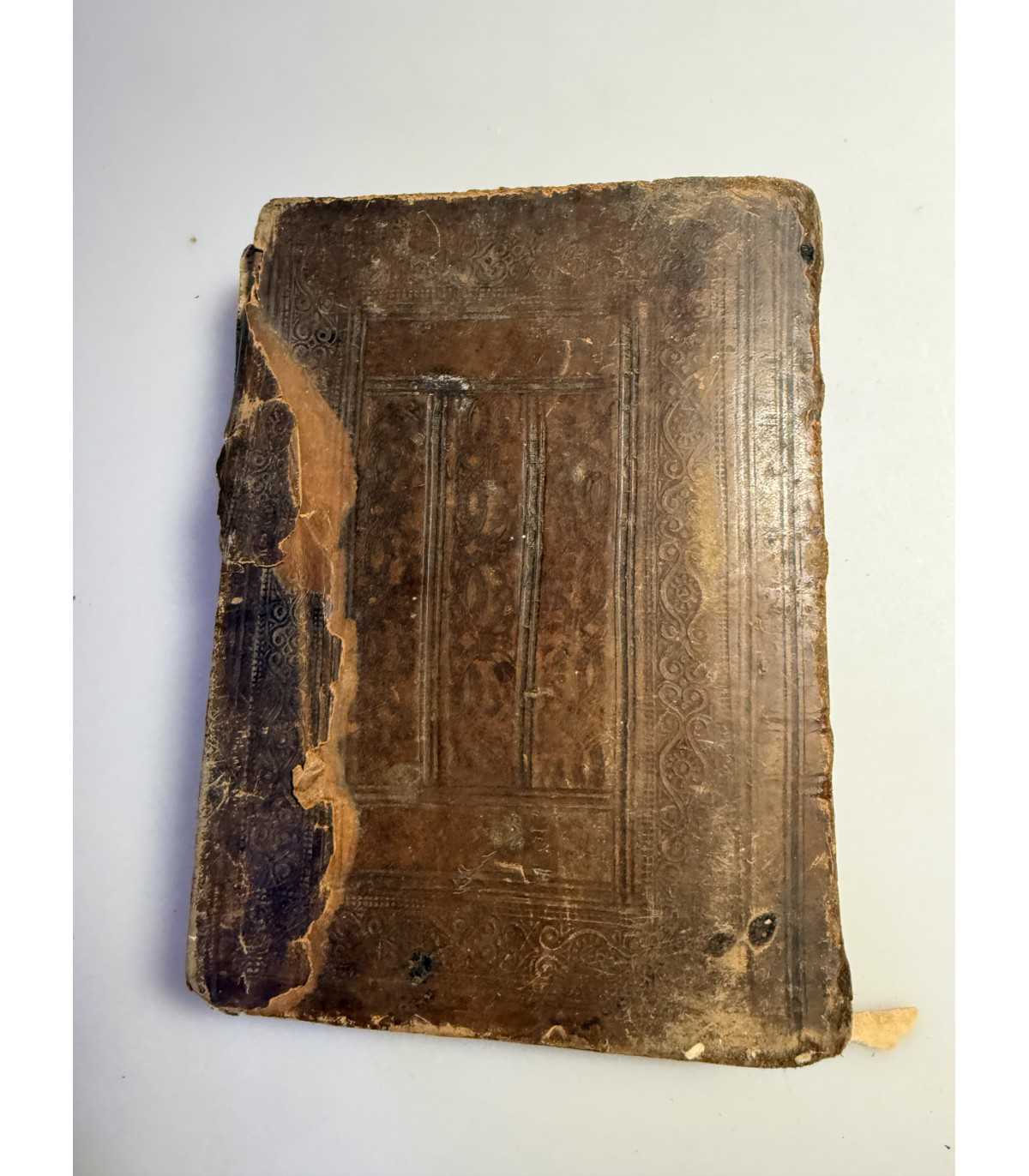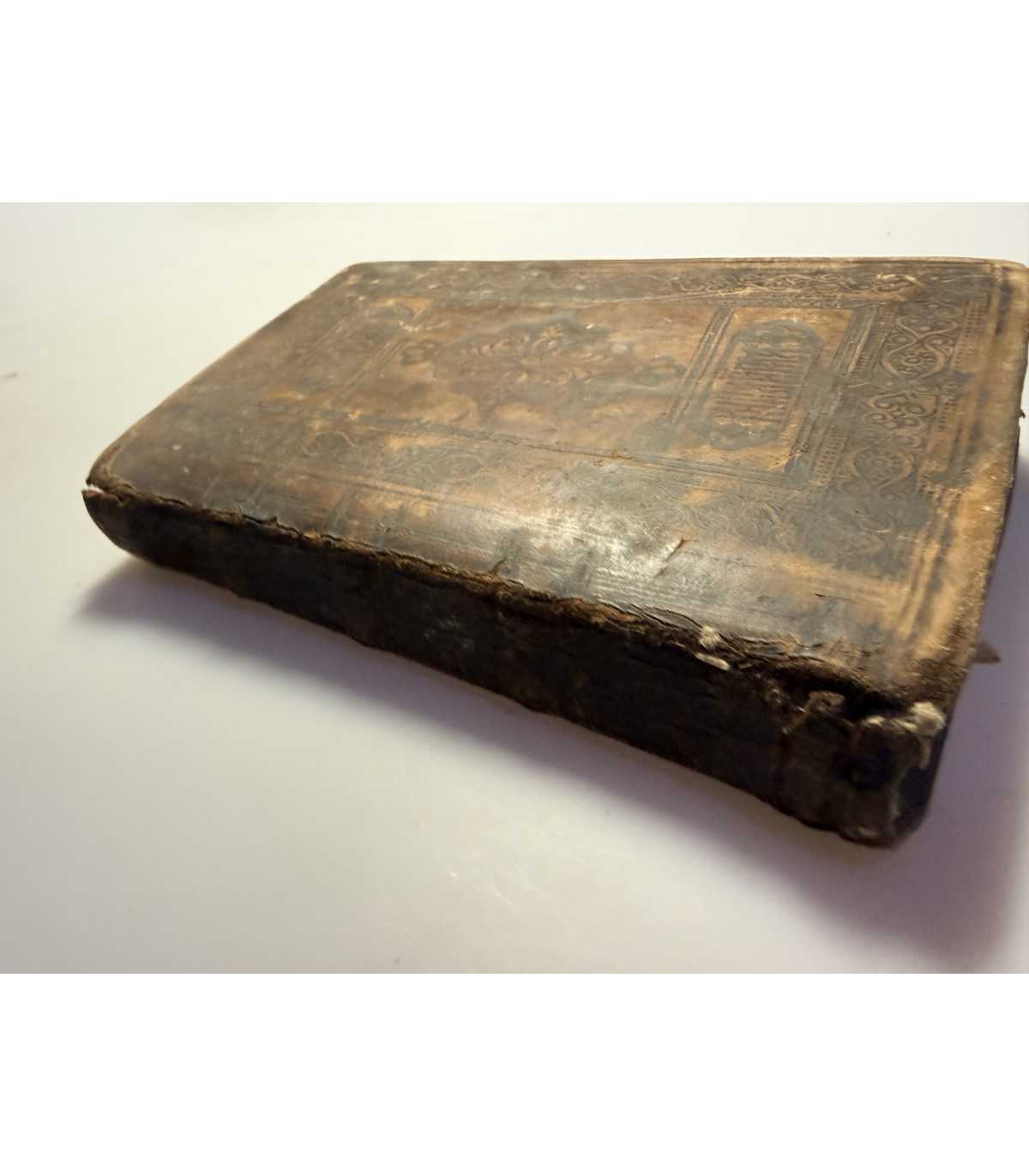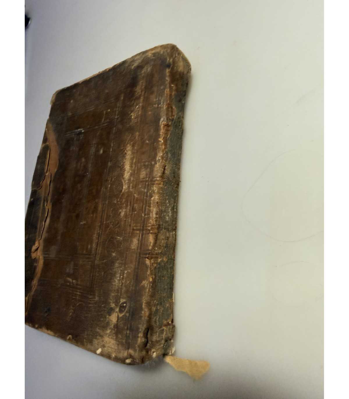 Переплет: эпохи, доска, цельно-кожаный со слепым тиснением, небольшие разрывы, потертости и утраты кожи. С К.Б. соединен слабо. Состояние: удовлетворительное