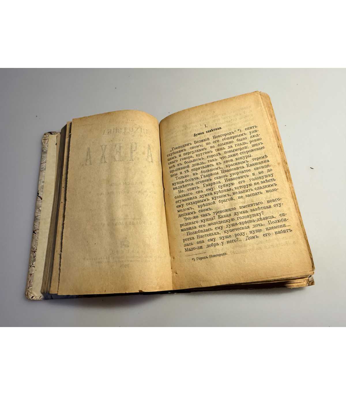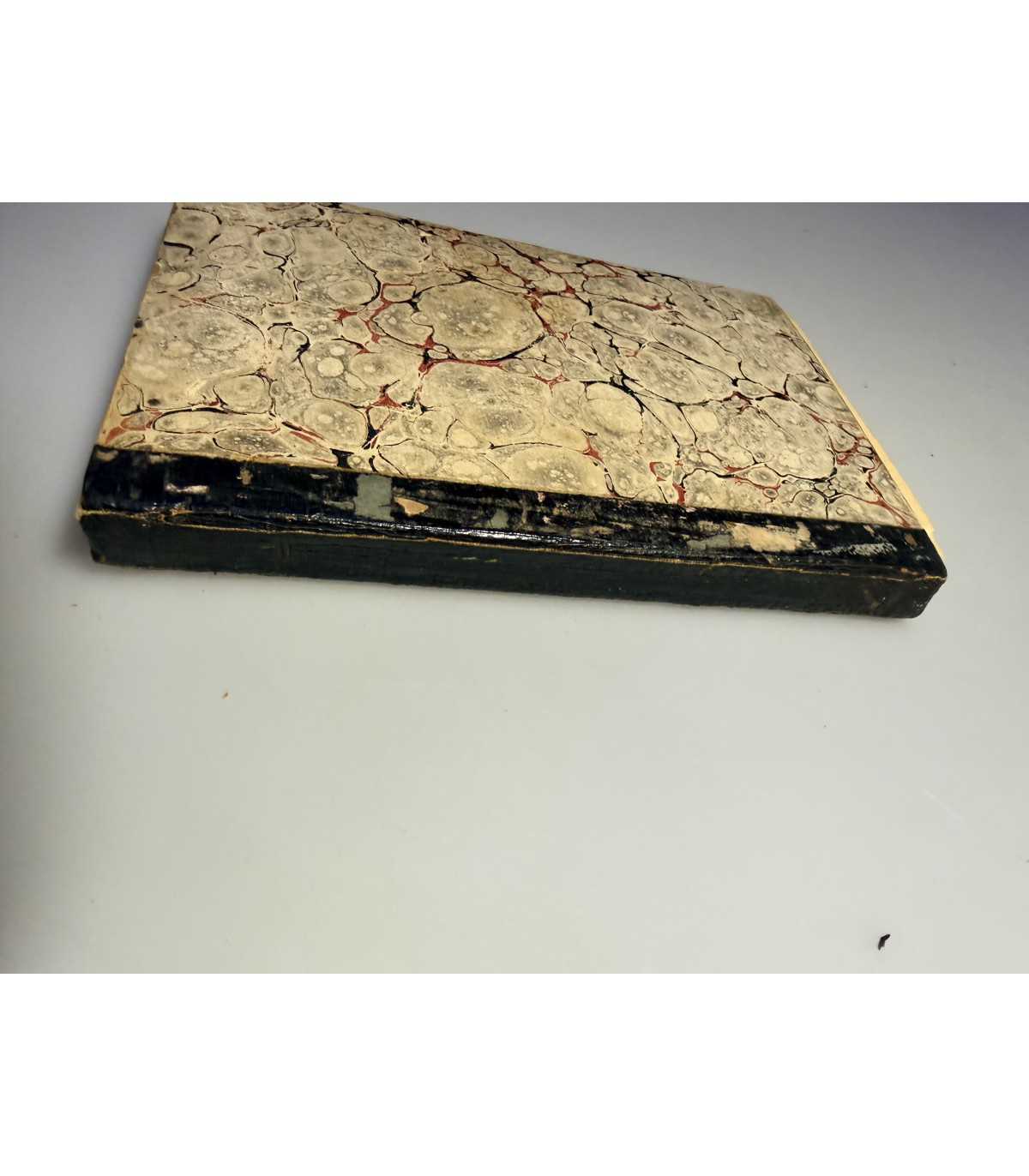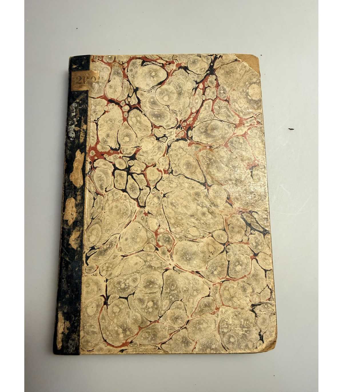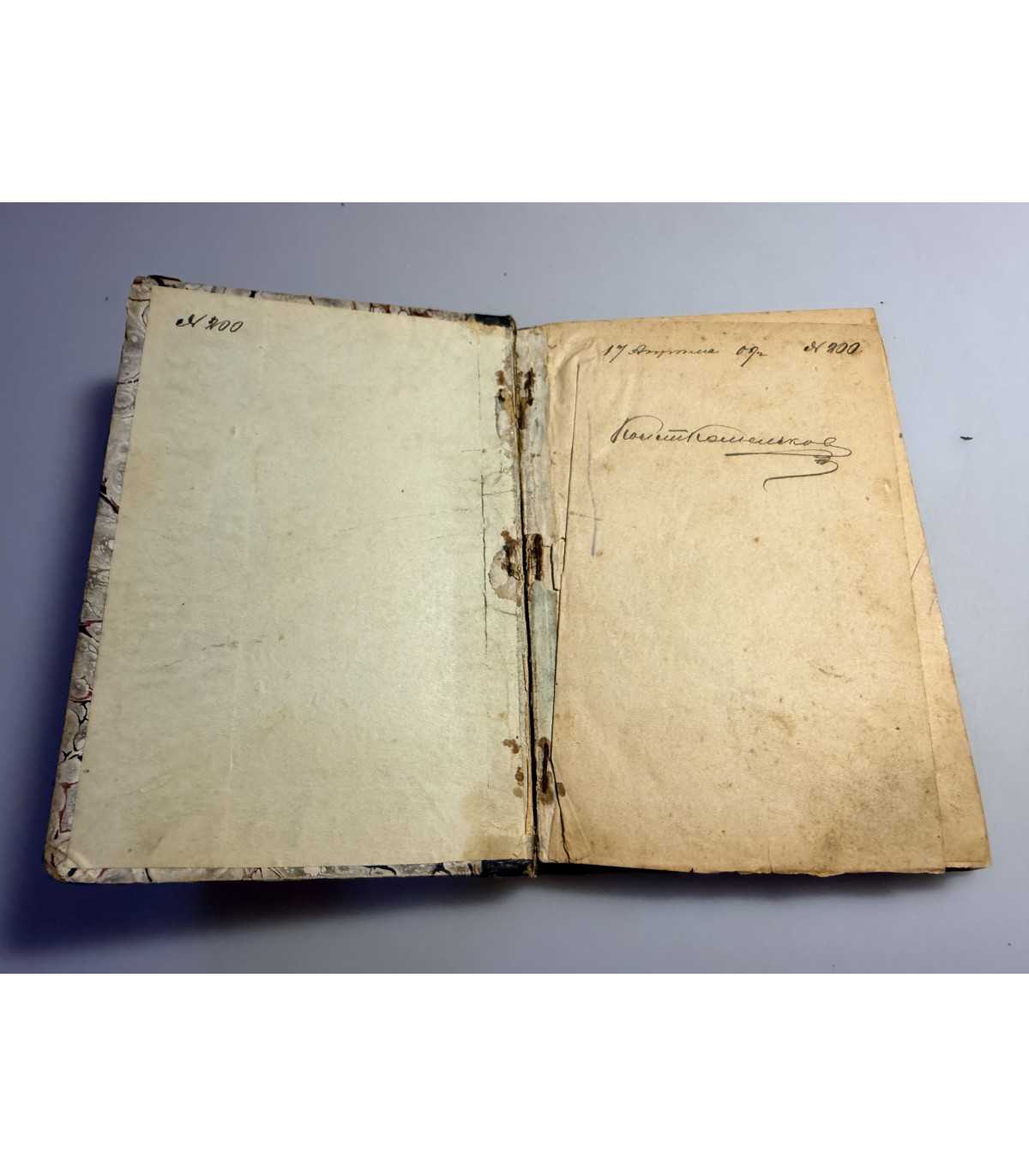 Переплет: смешанный картонно-кожаный, утрата части кожи на корешке, трещинки и разрывы; потертости и расслоение картона на крышках, состояние удовлетворительное.