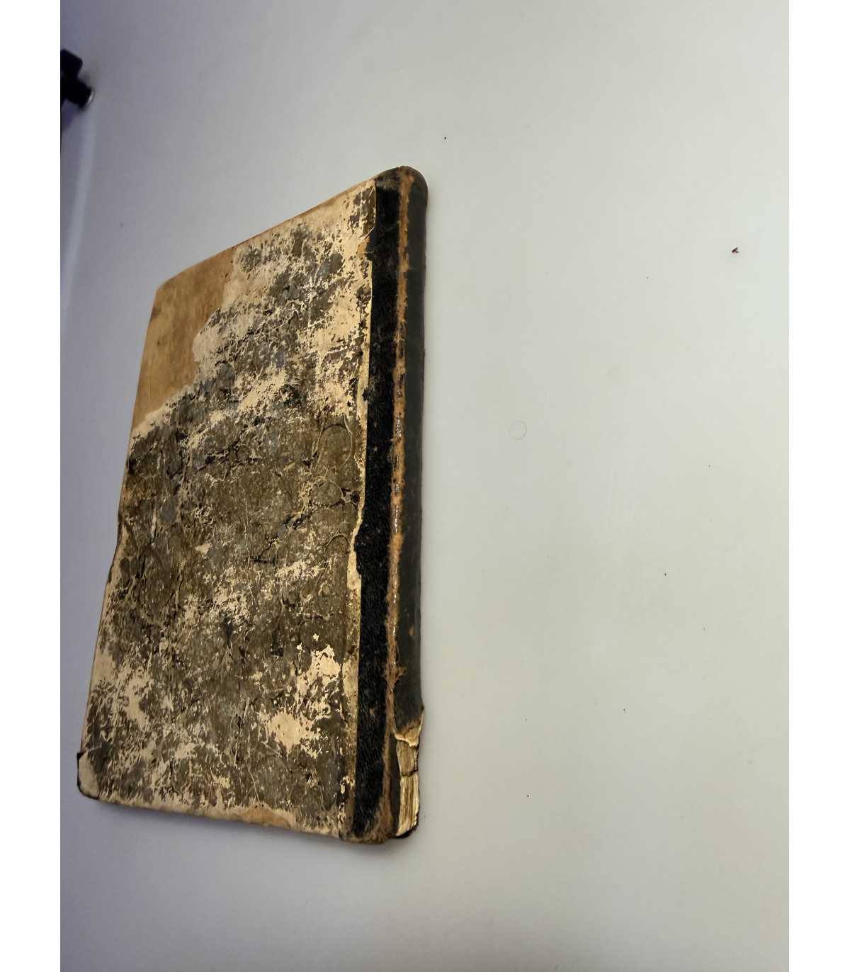 переплет: смешанный картонно-кожаны; тиснение на корешке, переплет потерт, с мелкими разрывами, расслоением картона по углам и краям крышек, утратами цветной бумаги на крышках. Состояние удовлетворительное.