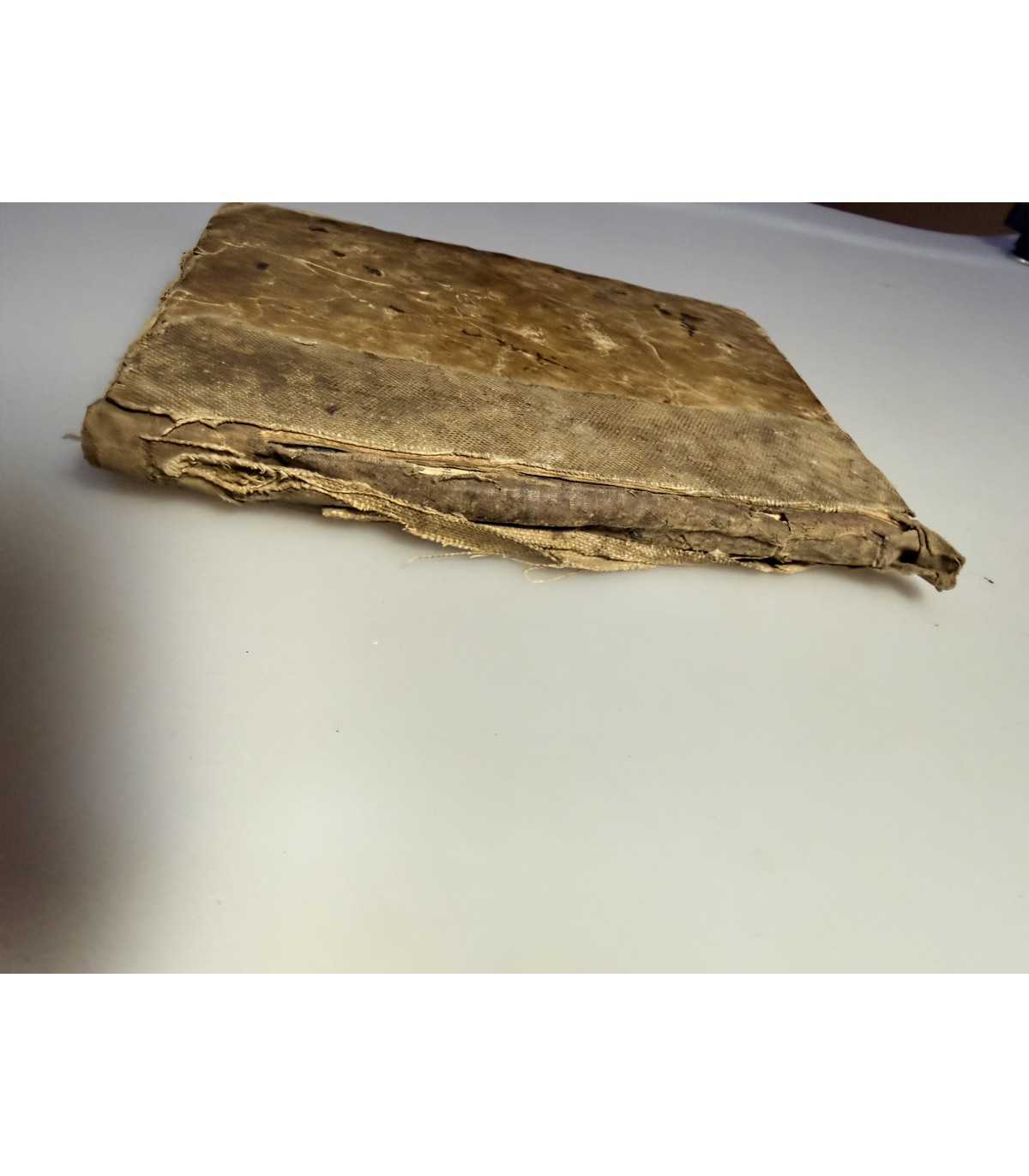 Книжный блок: - плотный, деформирован, распадается, блок отсаединен от корешка, несколько книг в обном переплете. выпадающих листов - есть, «лисьи» пятна, загрязнения или пятна от влаги на страницах присутствуют. Титульный лист - сохранен. Есть пометки.