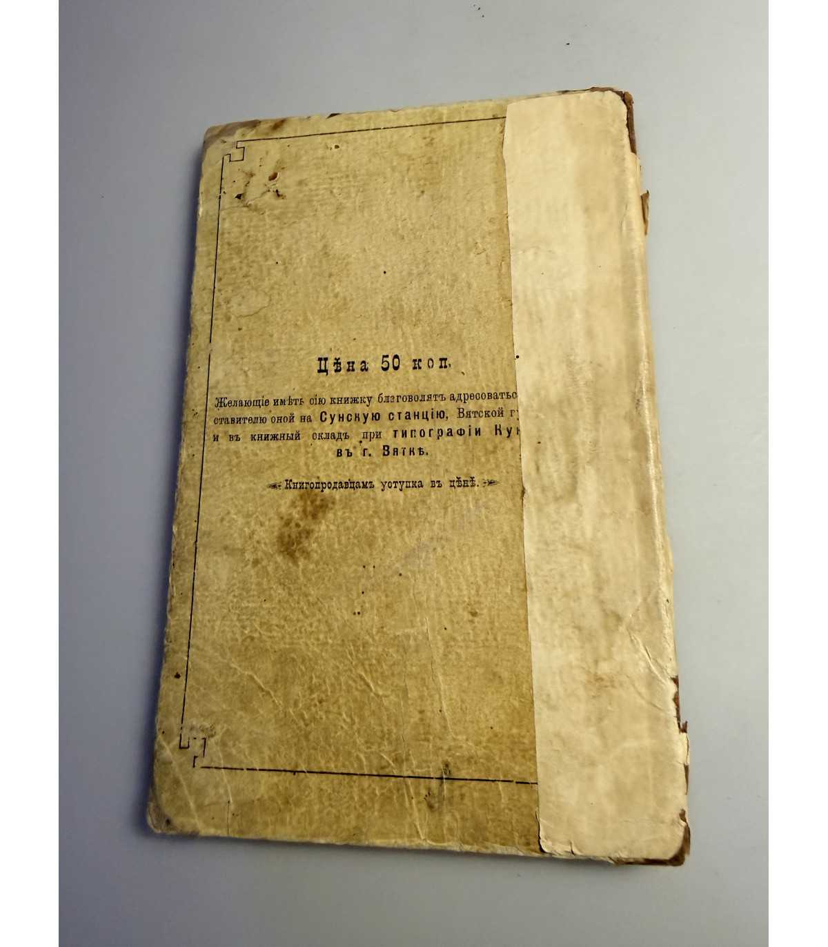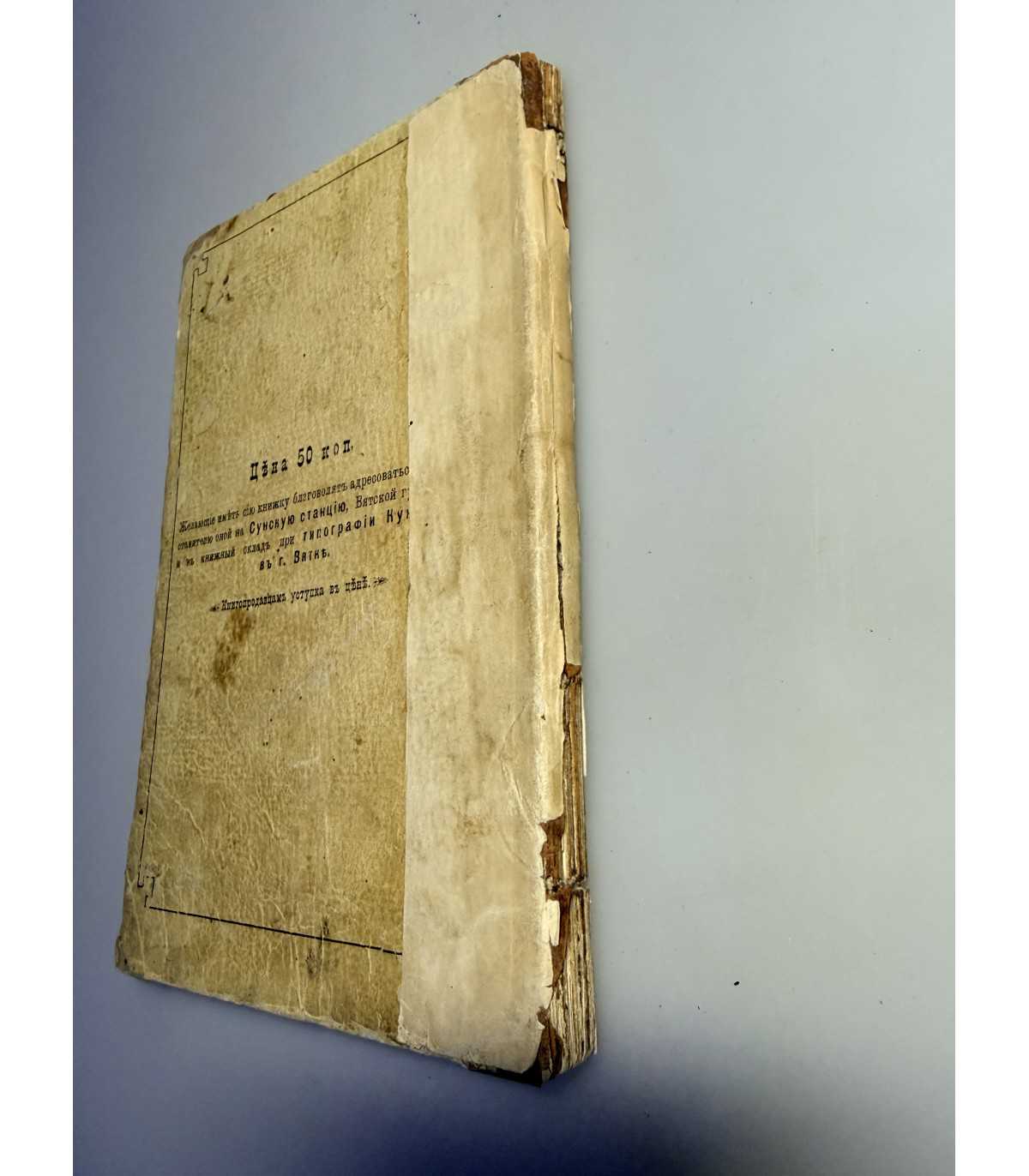 Книжный блок: - не плотный, деформирован, распадается, выпадающих листов - нет, «лисьи» пятна, загрязнения или пятна от влаги на страницах присутствуют. Титульный лист - сохранен. Есть пометки.