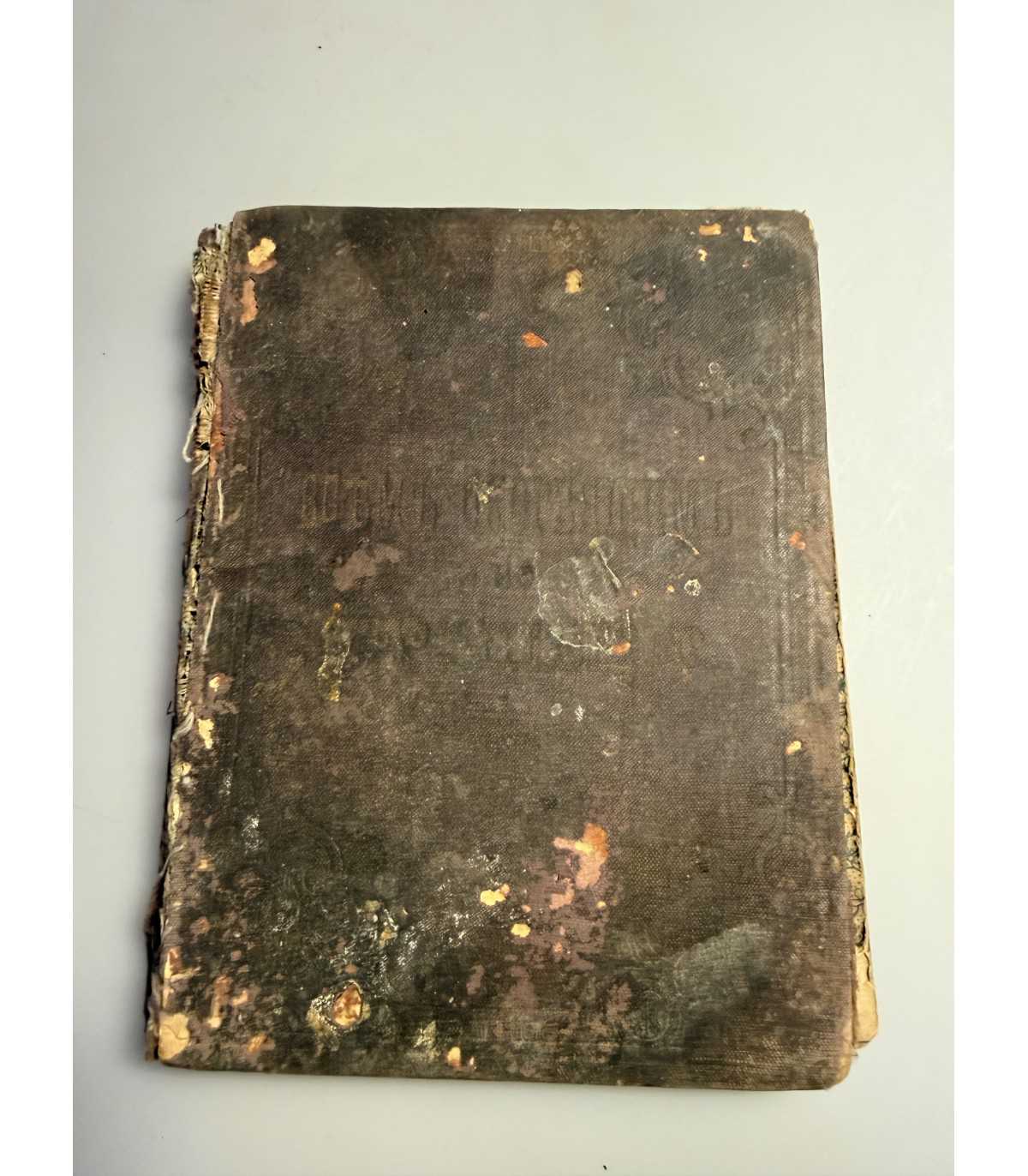 Переплет: сплошной тканевый , трещены, потертости. По краям и уголкам крышек потертости и расслоение картона. Корешок прошит нитками (для реставрации)
