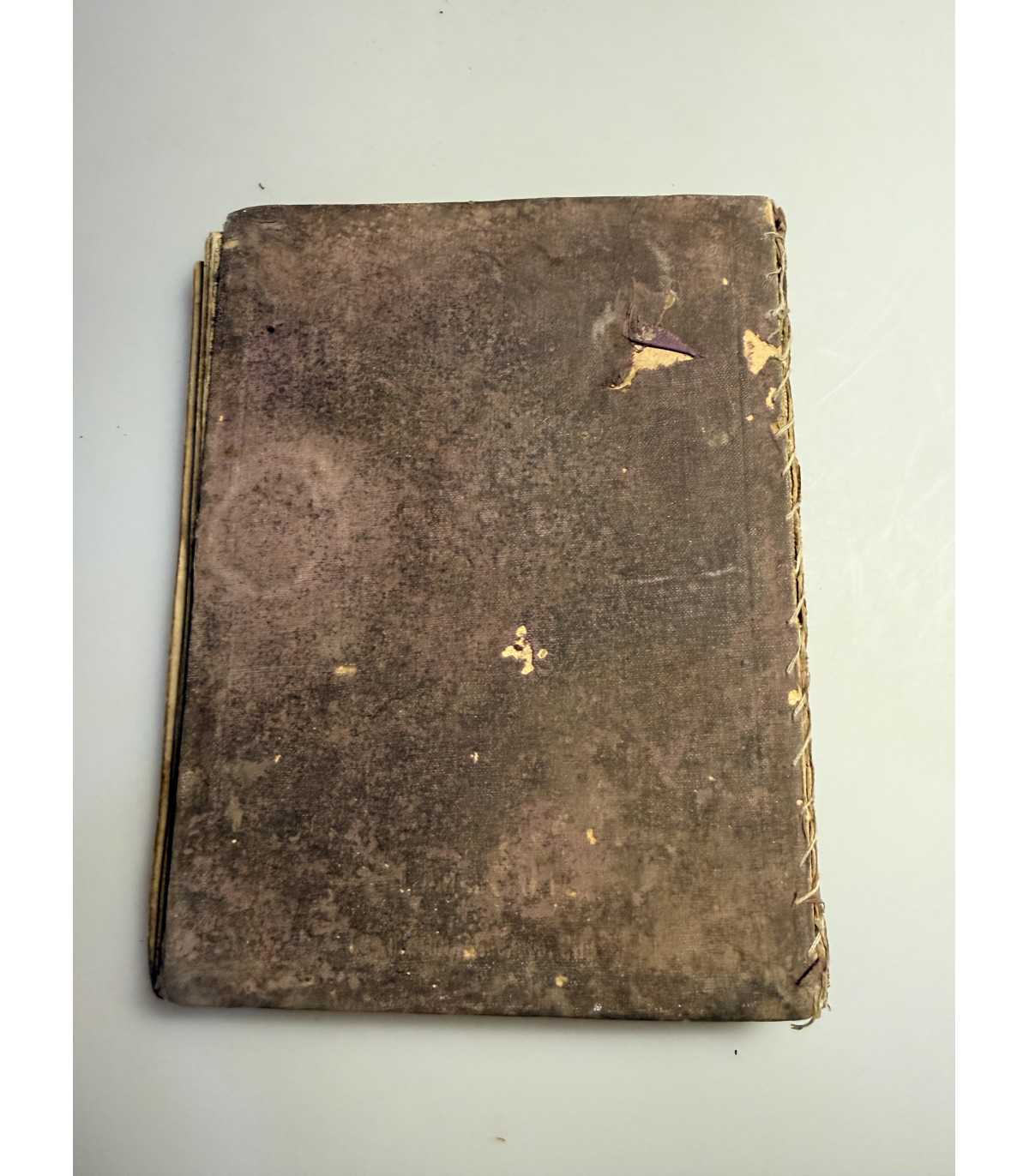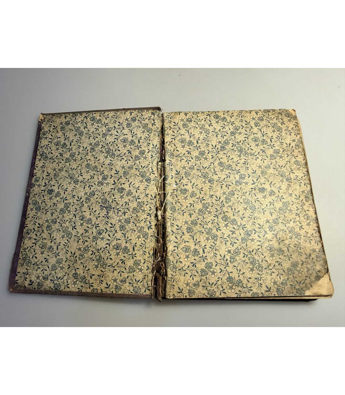 Книжный блок: - плотный, не деформирован, немного распадается, трещина между форзацем и блоком. Выпадающи листов - есть, «лисьи» пятна, заметки. Титульный лист - сохранен. На переднем и заднем форзаце цветочный рисунок.