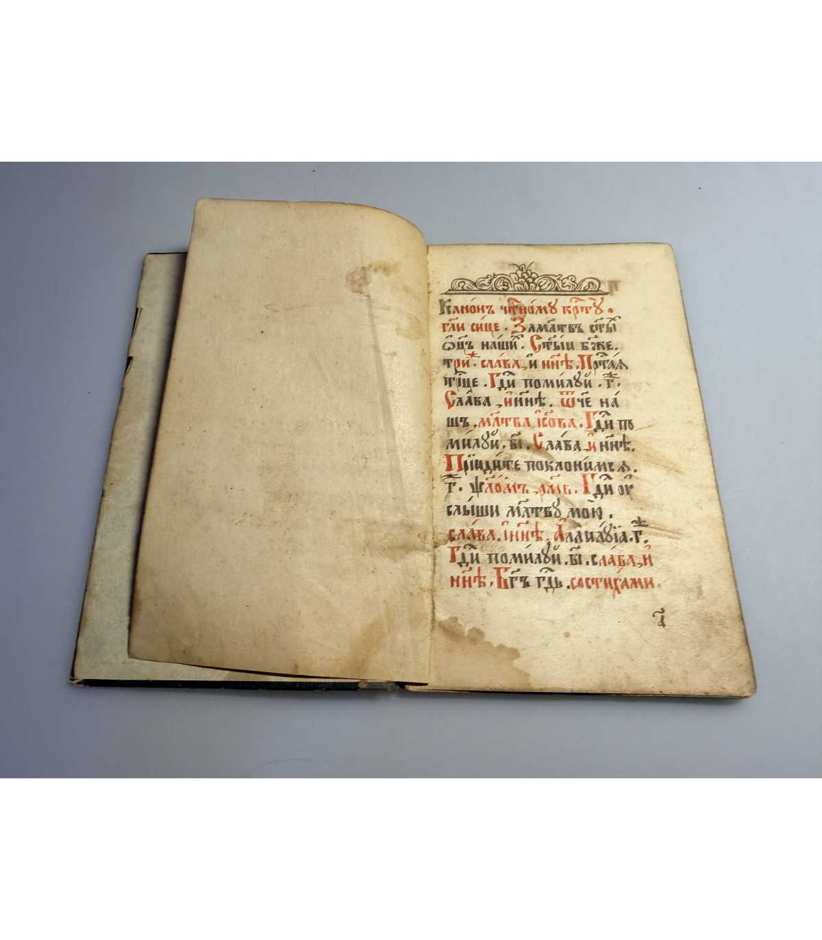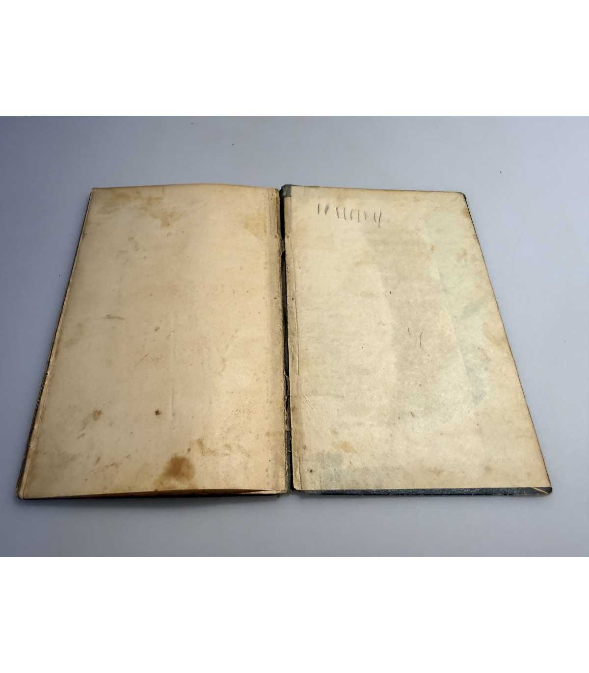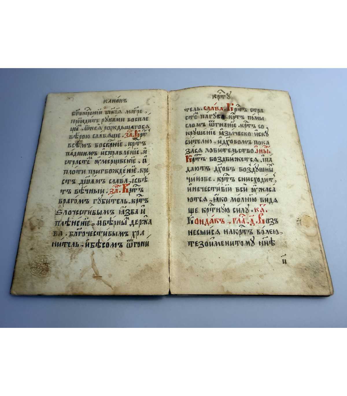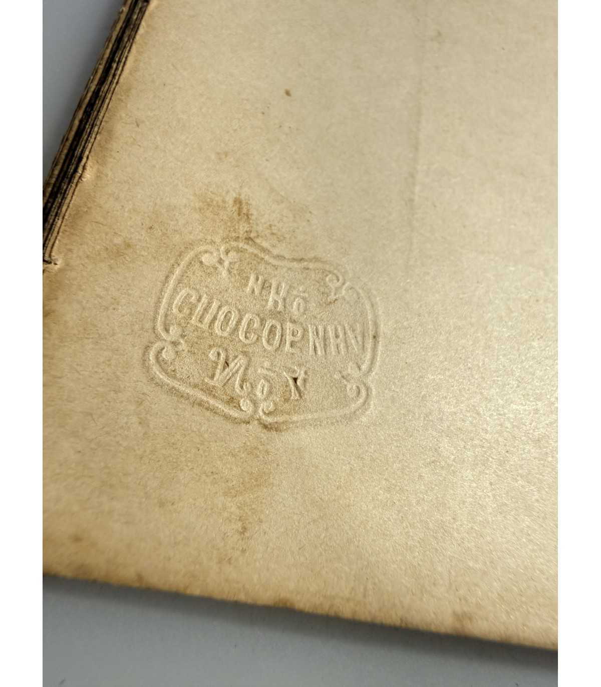 Книжный блок: - плотный, не деформирован, не распадается, выпадающих листов - нет, «временные» пятна или пятна от влаги на страницах присутствуют. титульный лист - отсутствует. В сшиве трещинки. На листах 12,13,14 внизу справа оттиск Способина ригория Ивановича, производителя бумаги «°4 (пособина и Ко». Есть пометки.