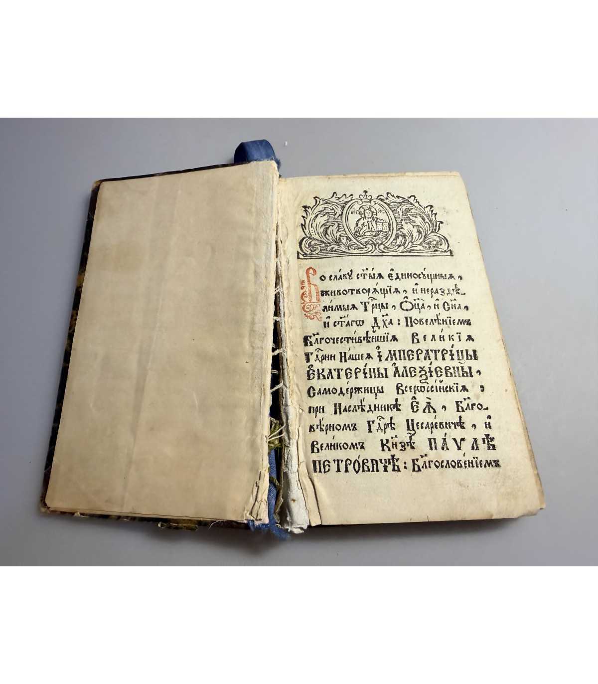 Печать двухцветная, орнаменты, гравированный фронтиспис, с инициалами.
