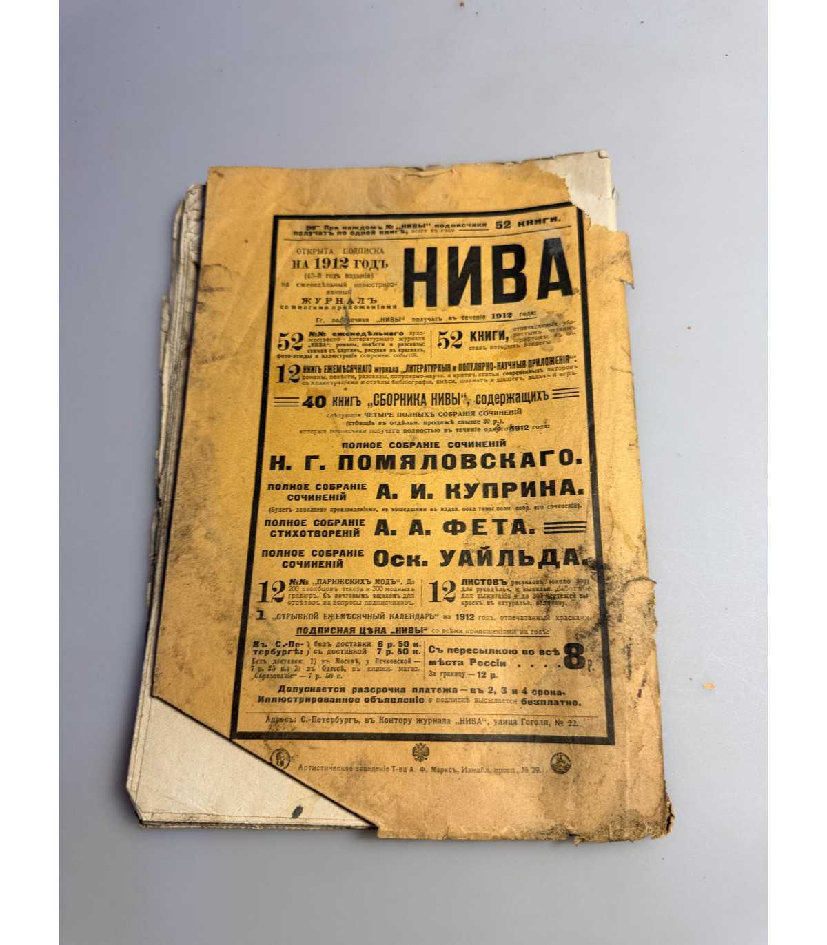 СК-247.Ежемесячные литературные и популярно-научные приложения к журналу Нива No 12, 1911 год