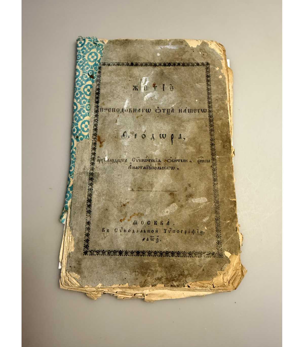 СК-262.Житие преподобного отца нашего Феодора Москва, Синодальная типография, 1860 год