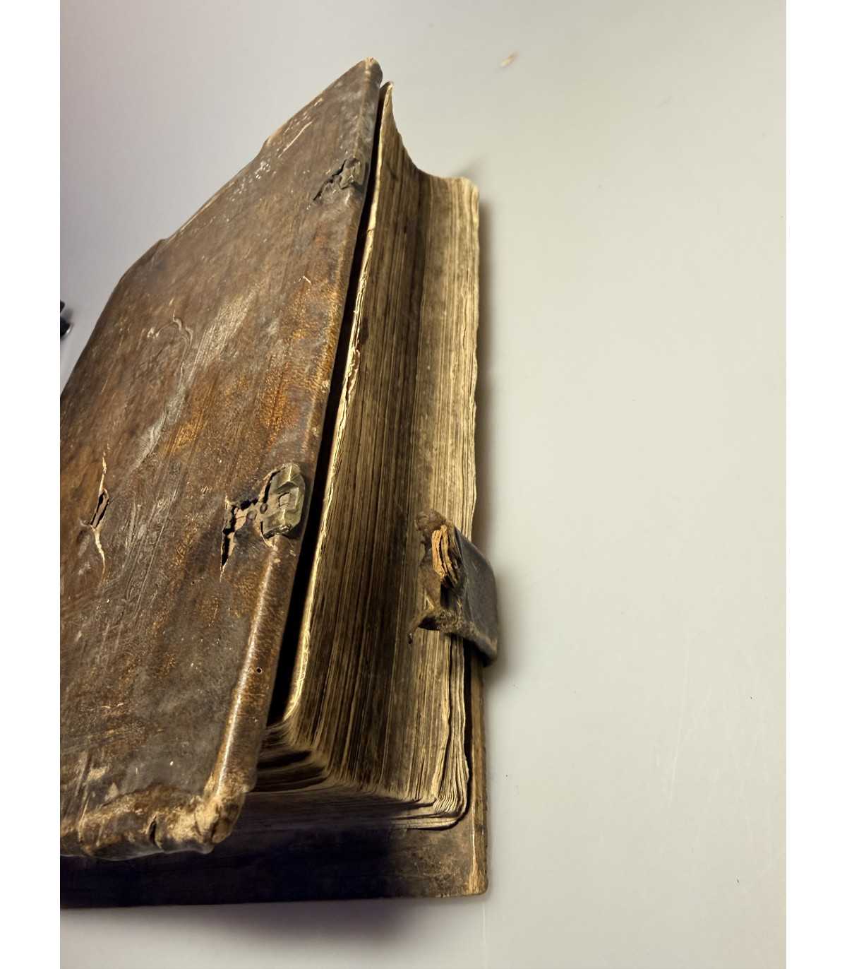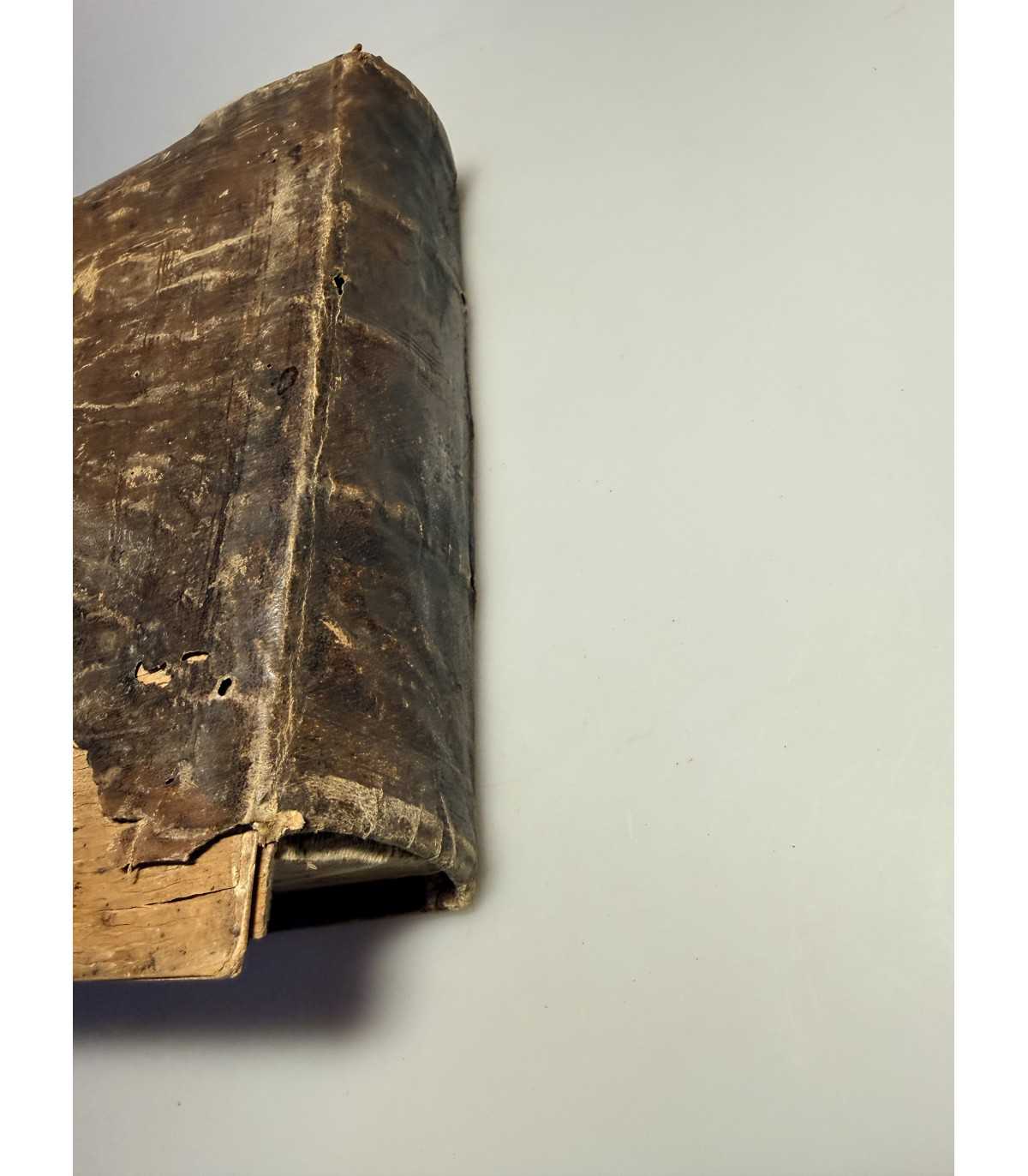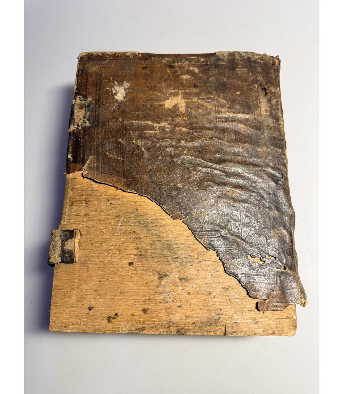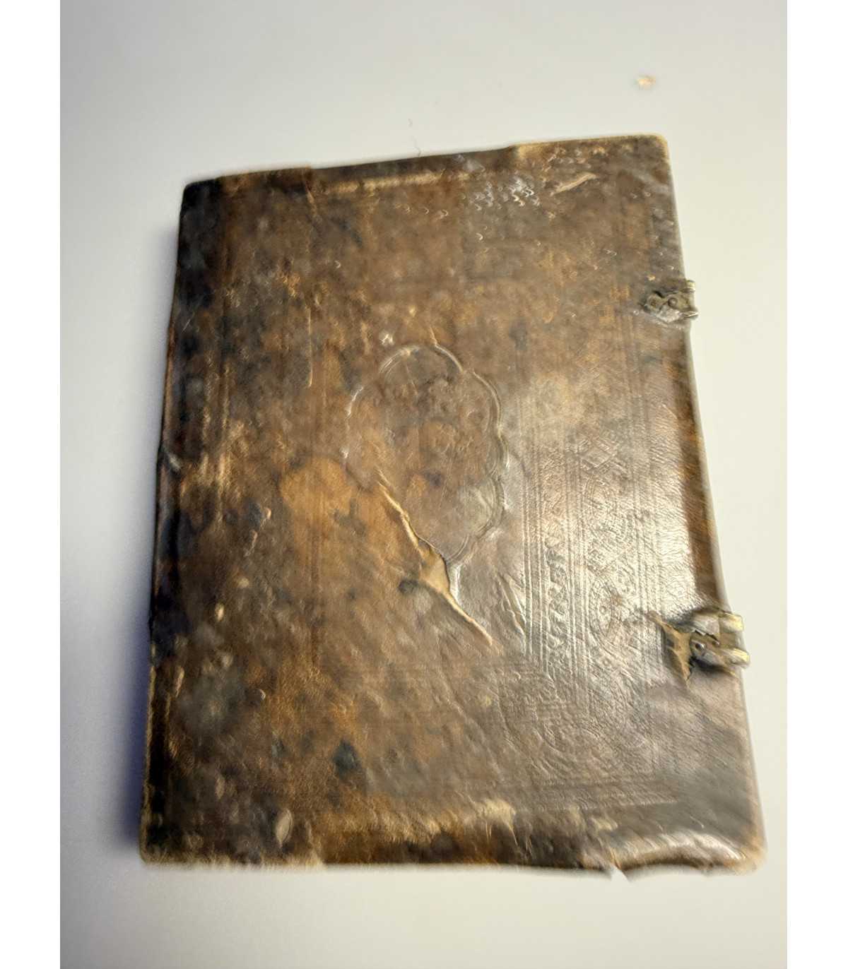 Переплет: эпохи, доска, цельно-кожаный со слепым тиснением, трещины,