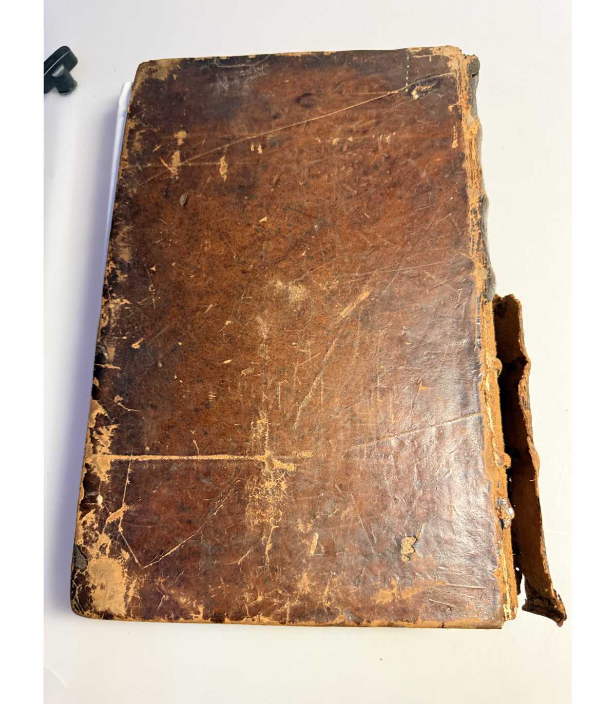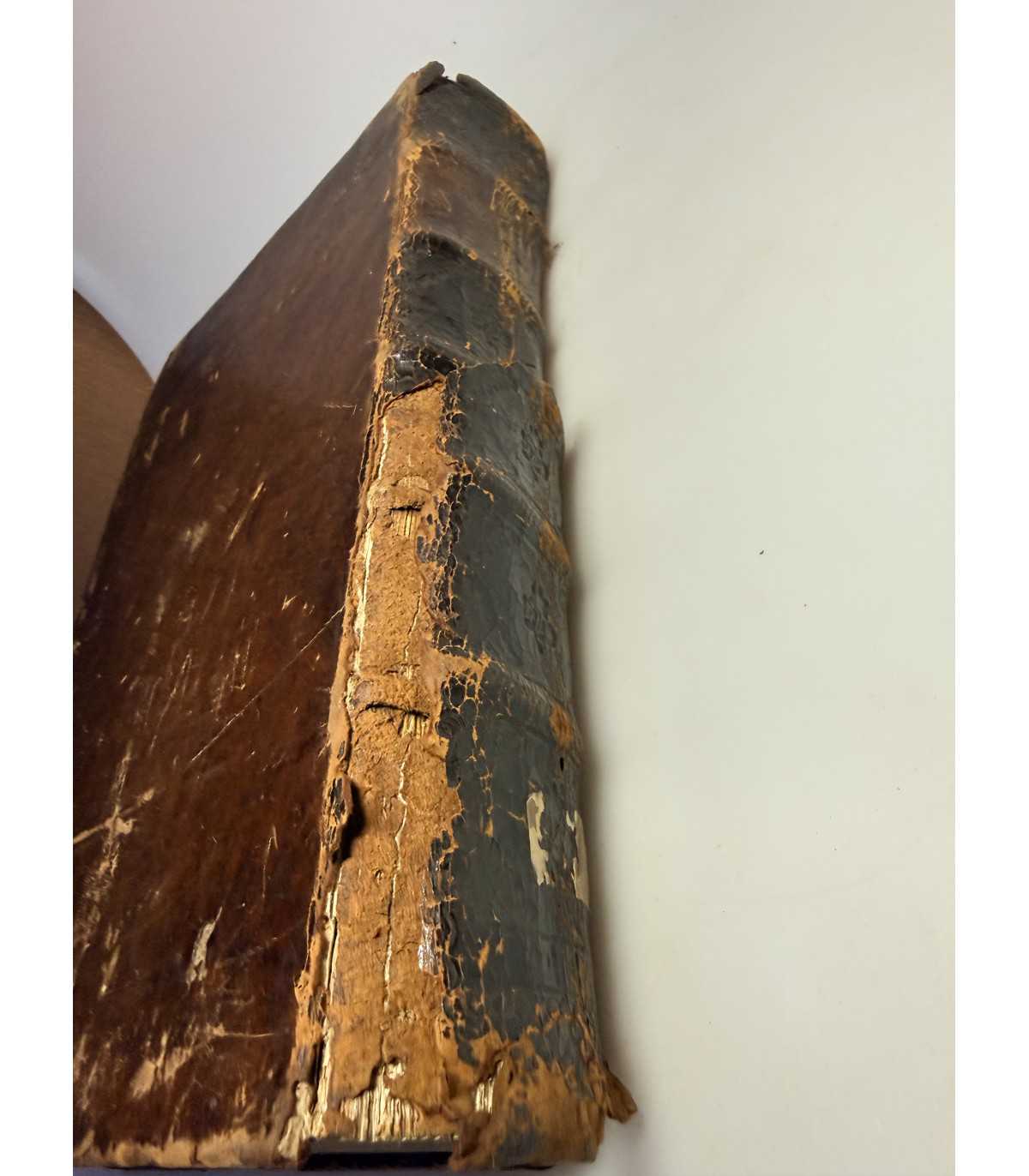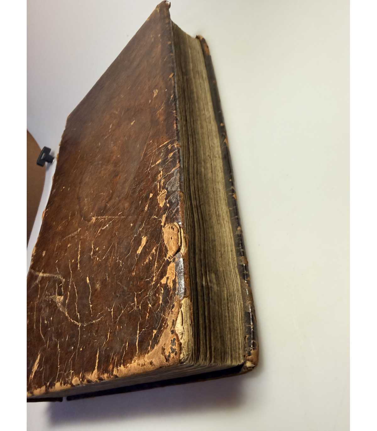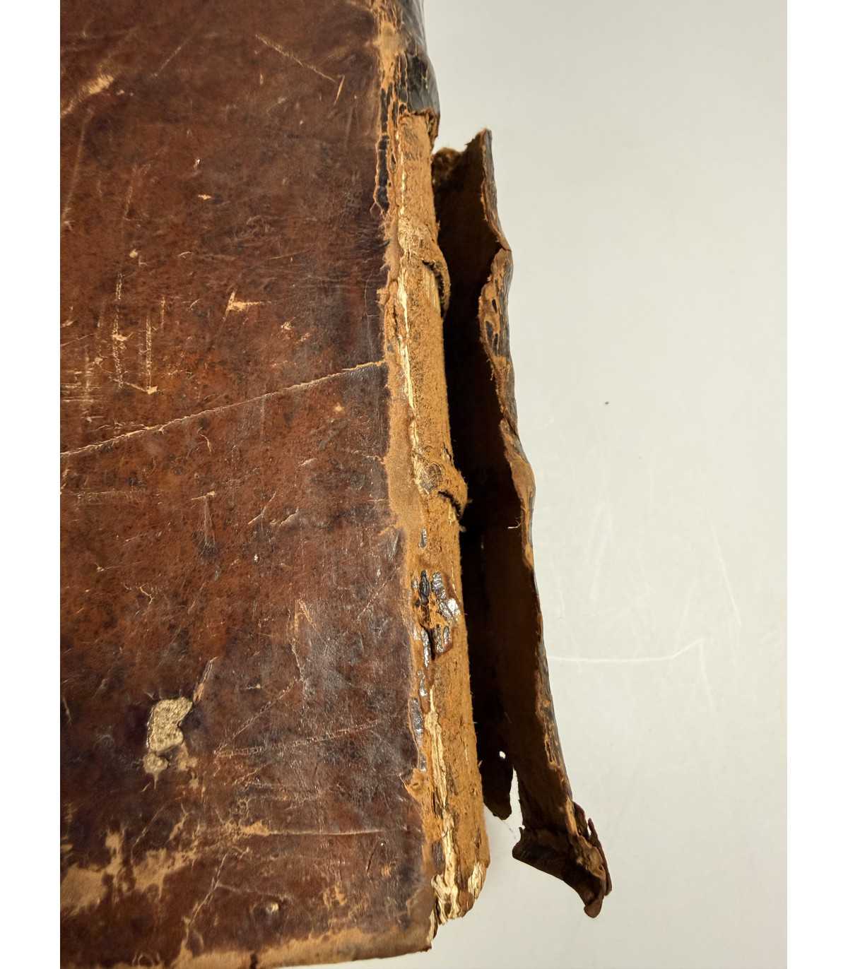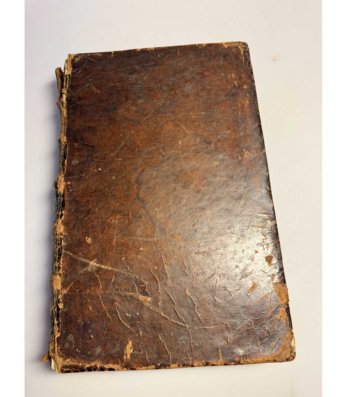 Переплет: эпохи, цельно-кожаный с тиснением на корешке с названием. На переплете видны потертости, по углам - небольшое расслоение картона, на корешке - трещинки, кусок кожи отходит в низу и небольшой вверху, держатся за кожу верхней крышки. Бумажные форзацы. Состояние: хорошее