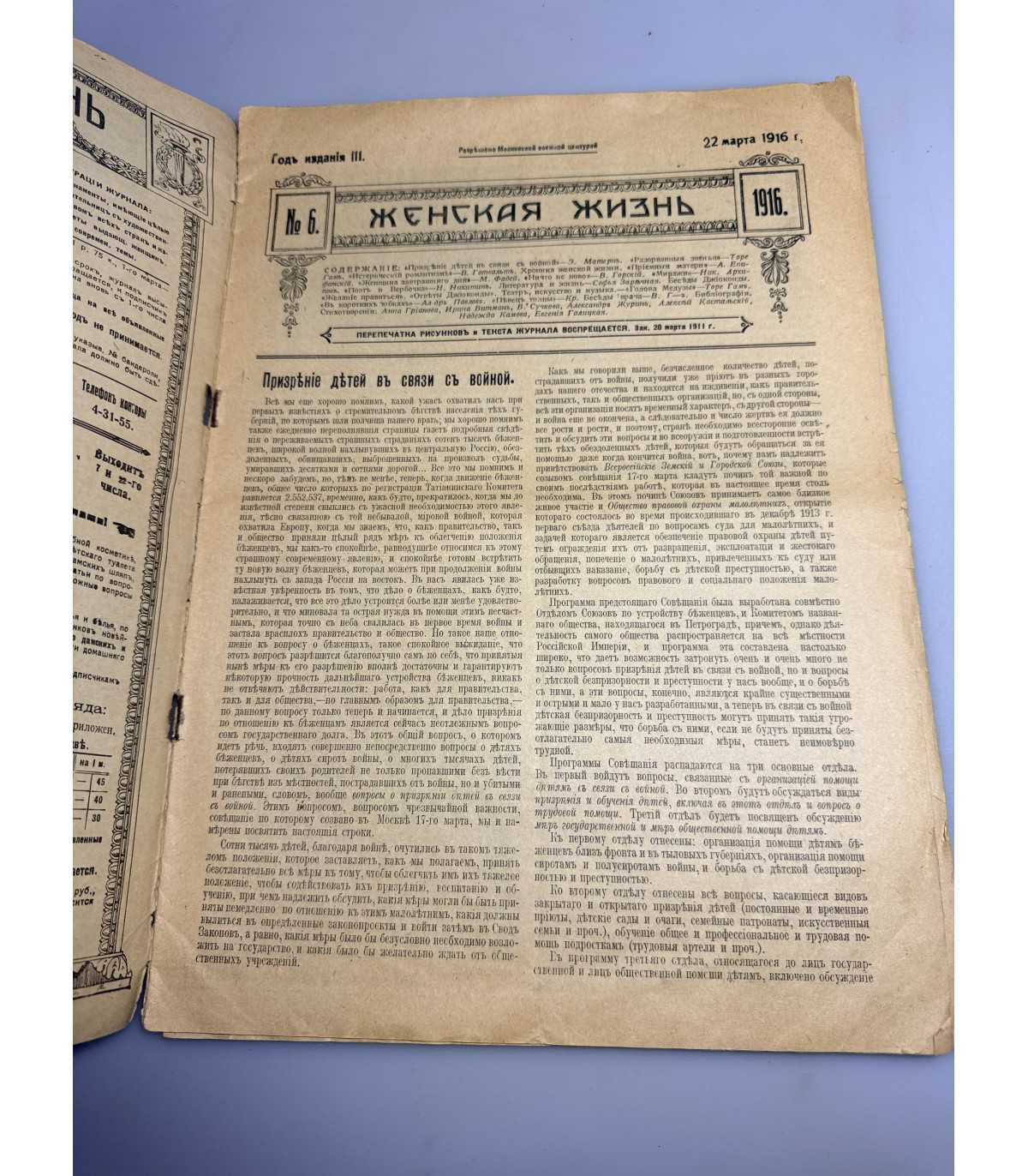 государством, охраны материнства и детства, целомудрия. С № 22 за 1915 год в