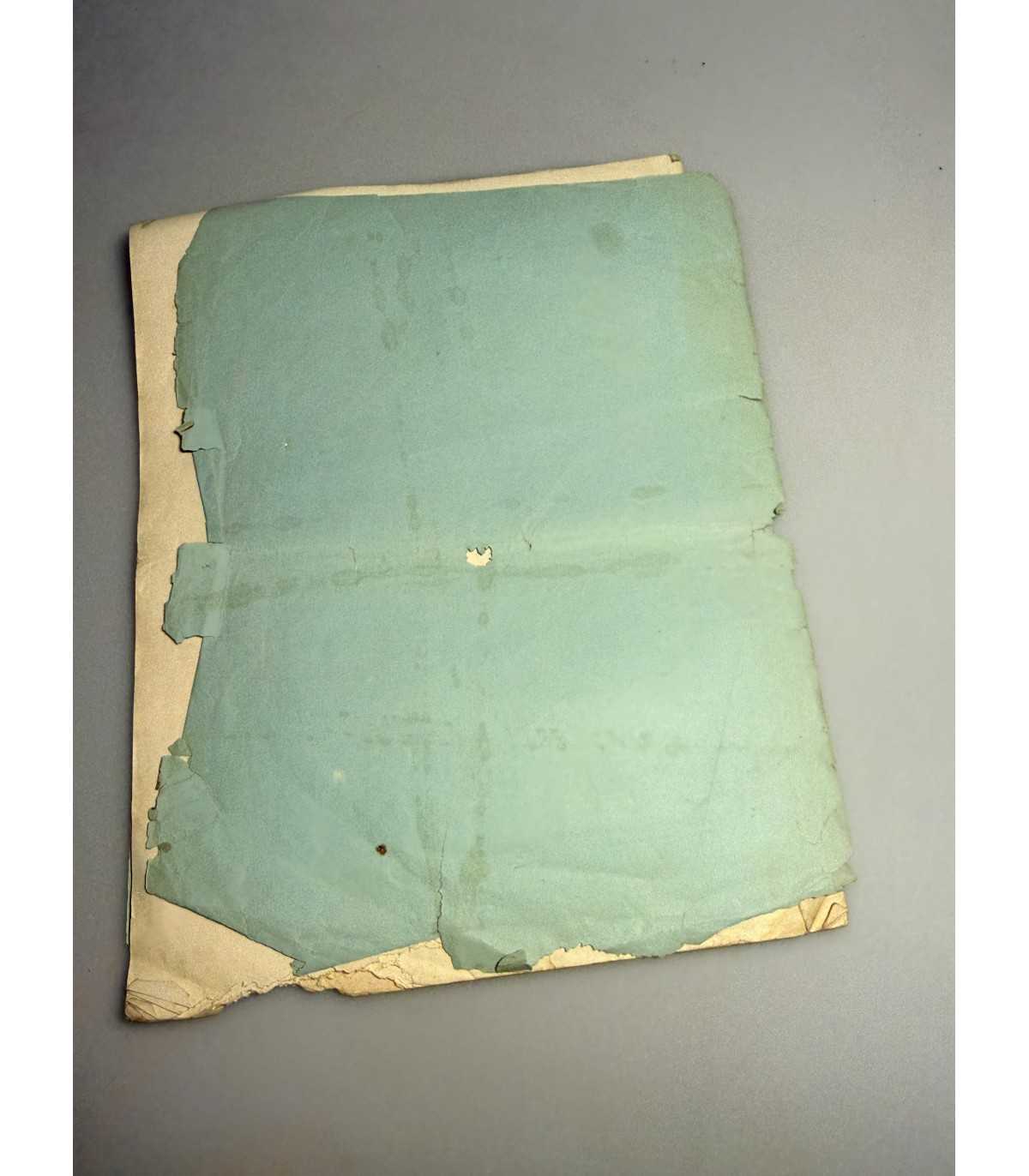 Обложка разорвана по сгибу, надрывы и загибы по краям листов,
